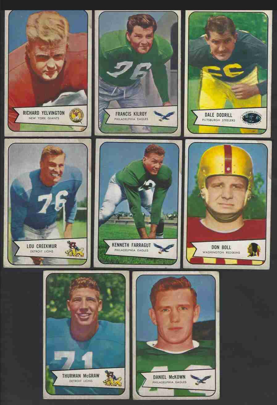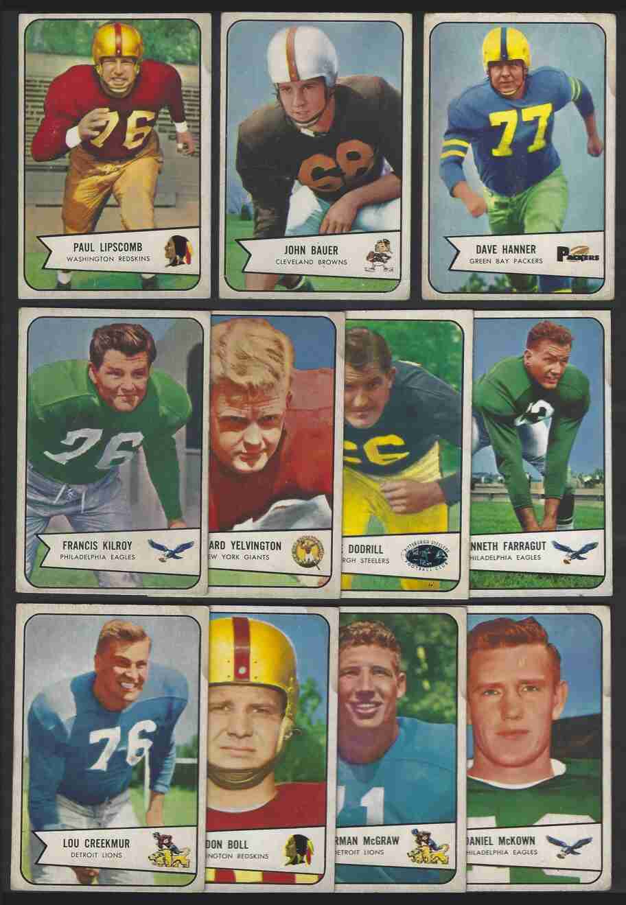 1954 Bowman Football Lot (11) -SP's-. No's-77,79,81,83,84,85(HOF),87,88(RC), 89,91,93. Rare large lot of scarce 1954 Bowman SP football cards. This is a lower-grade lot. Nice lot to fill some numbers. Please review scans carefully for condition.