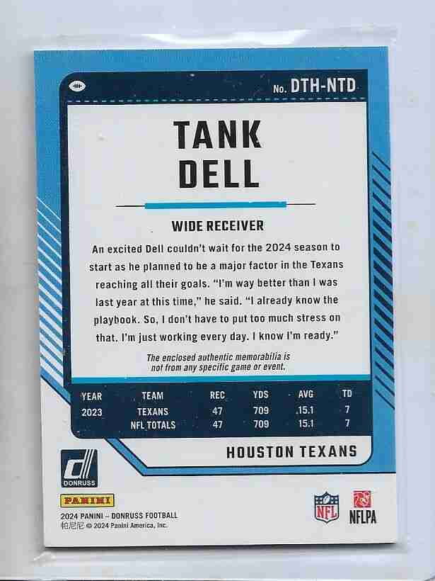 2024 Donruss Threads ~ Tank Dell Houston Texans GW-JSY