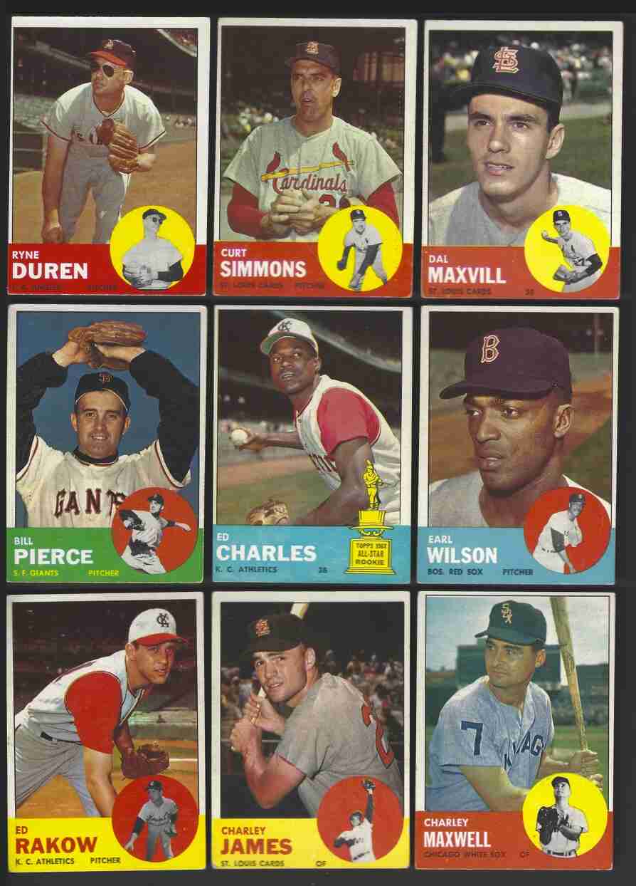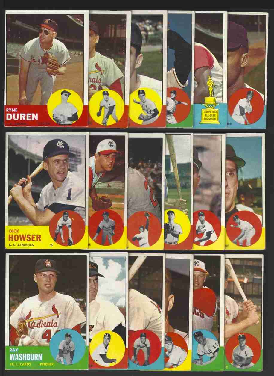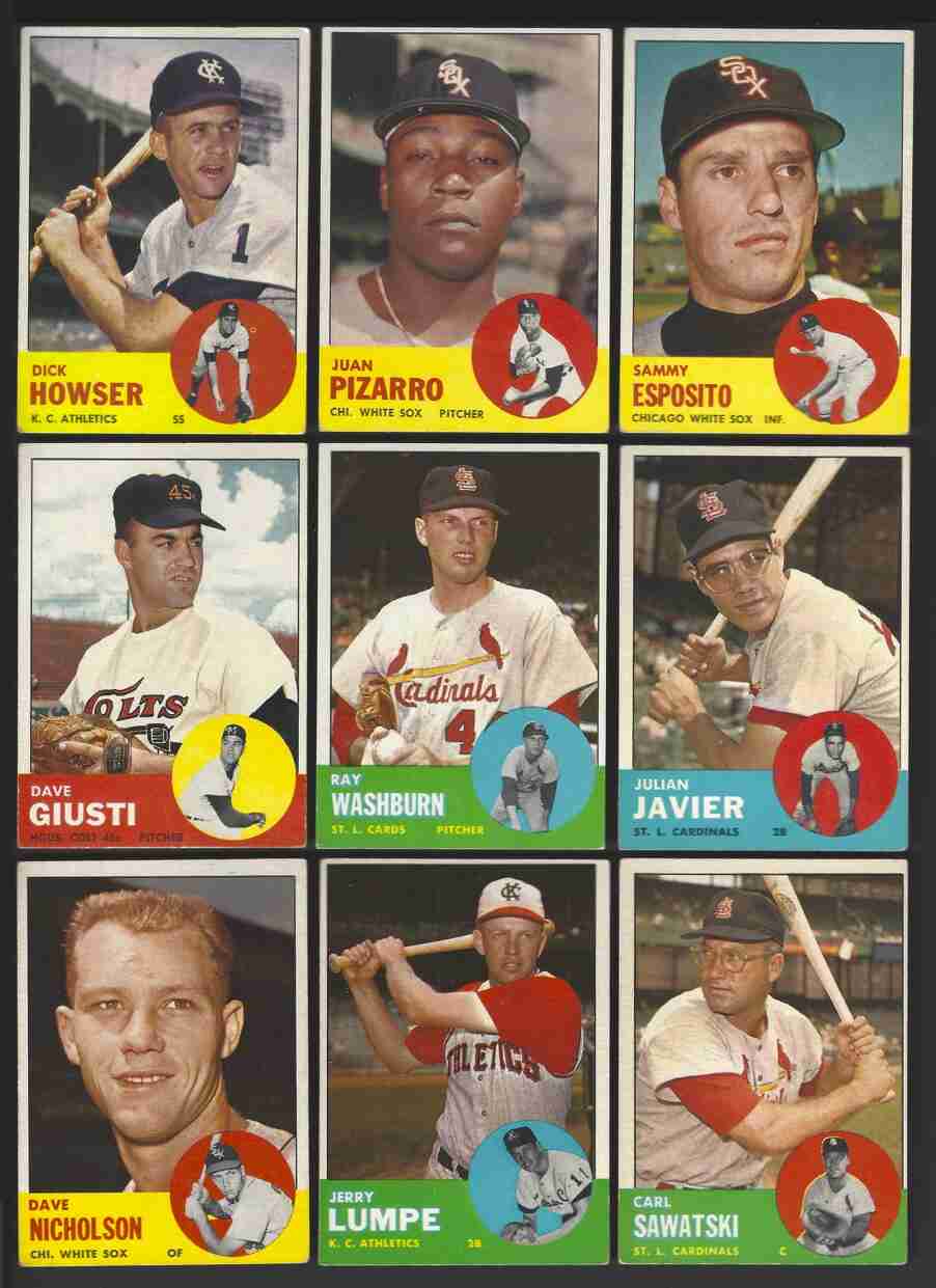 1963 Topps Baseball Lot (18). No's-17,22,49,50,67,76,82,83,86,124,160,181, 189,206,336,234,256,267. Excellent large lot of 1963 Topps Baseball cards. Cards are in the higher-grade range. Cards have minor flaws. Nice shape for this condition-sensitive set. Please review scans carefully for condition.