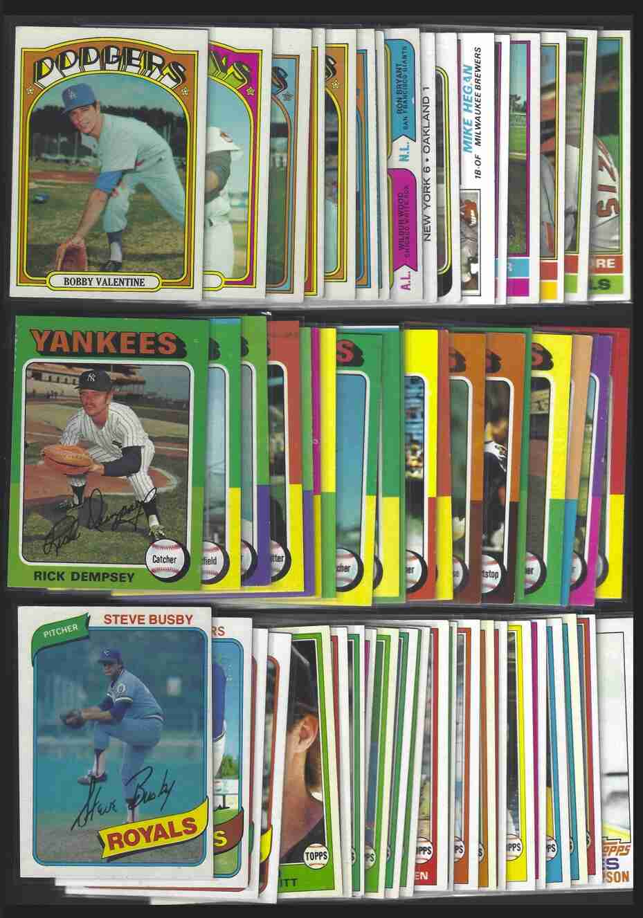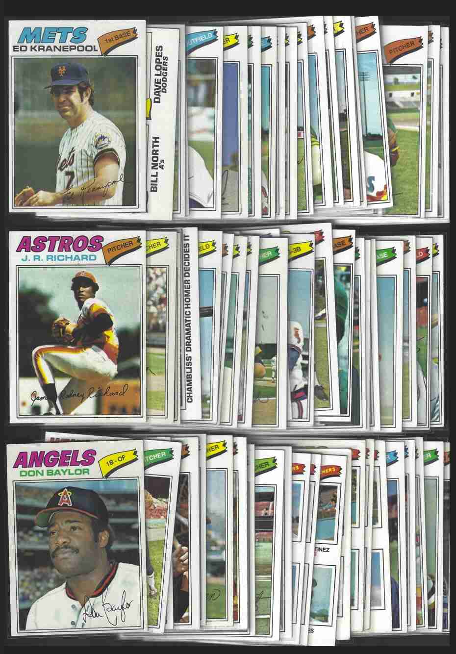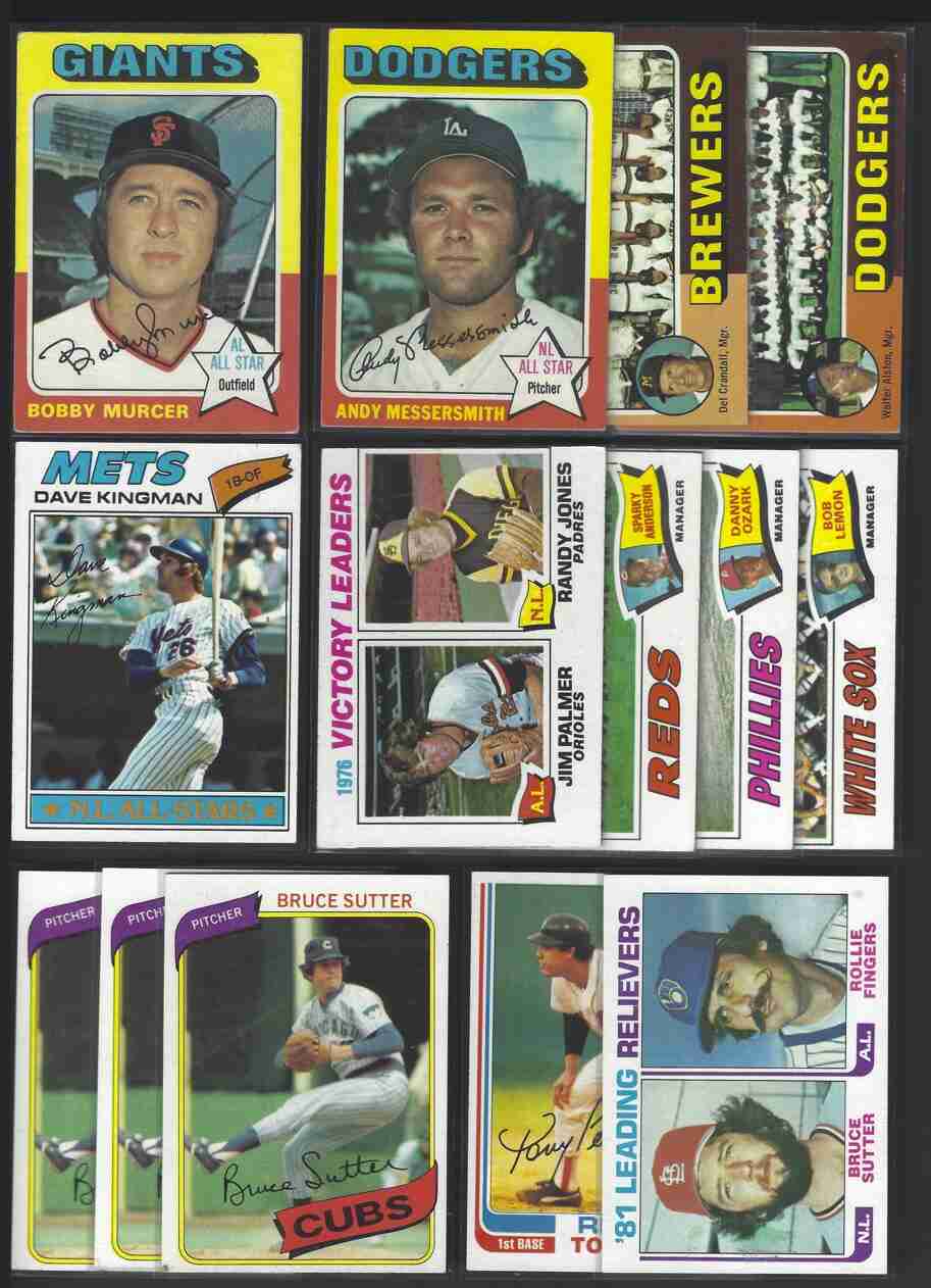 1972-1981 Topps Baseball Lot (150). Lot breakdown: 1972(7), 1974(5), 1975(25), 1976(7), 1977(74), 1980(7), 1981(17), 1982(6), 1986(1), 1988(1). Mixed lot of Topps Baseball cards. Half of the lot are 1977 Topps. There is some duplication. Team card checklists are unmarked. Most cards are in the higher-grade range. Nice lot! Please review scans carefully for condition.