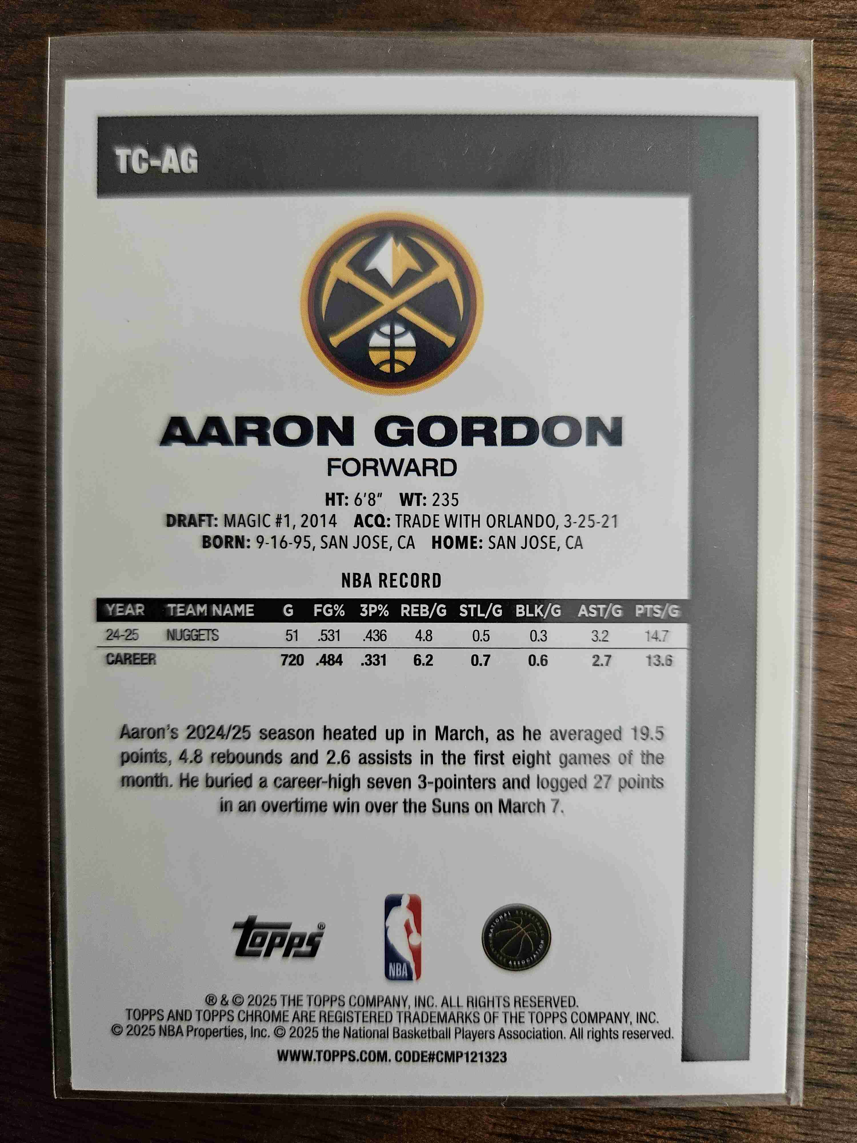 Aaron Gordon 2025/26 Topps Chrome Silver Pack Refractor