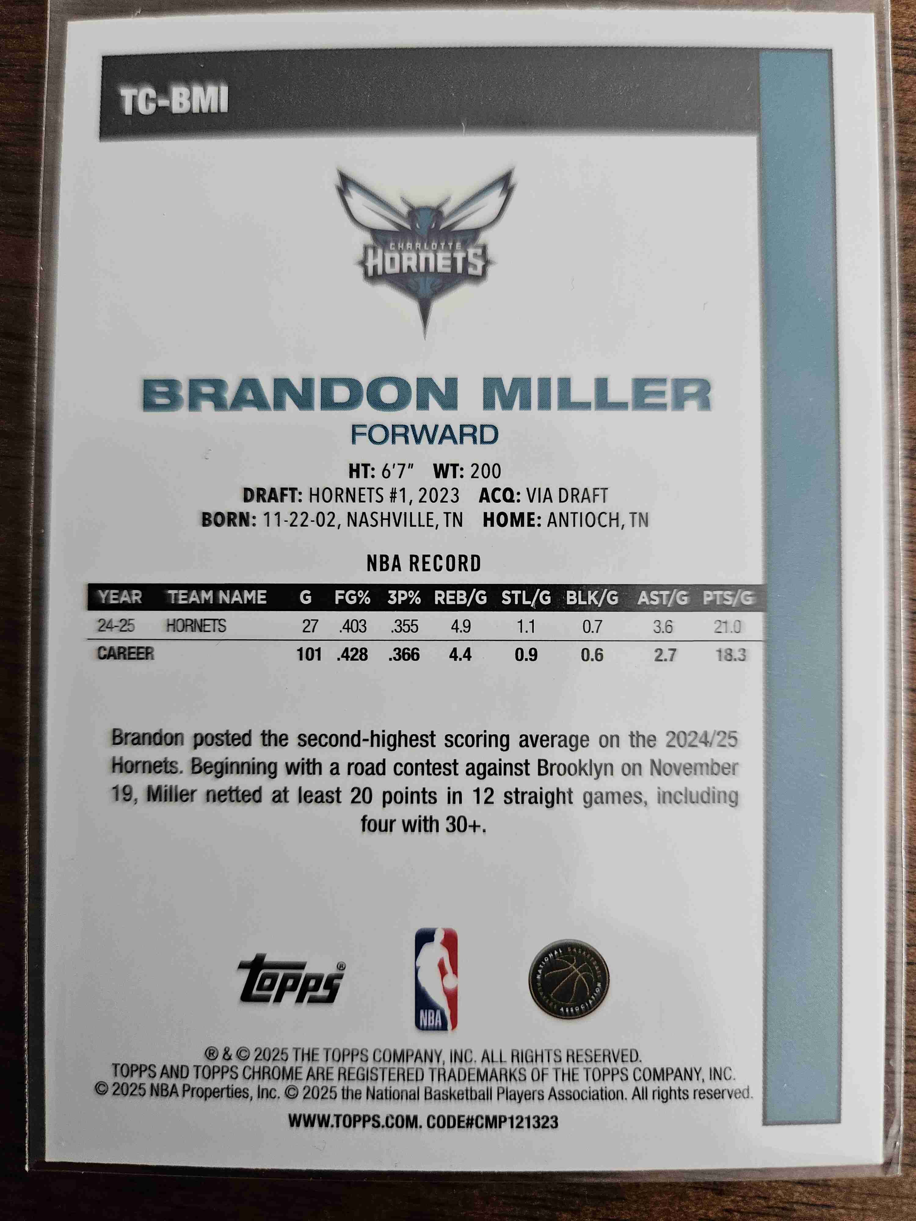 Brandon Miller 2025/26 Topps Chrome Silver Pack Refractor