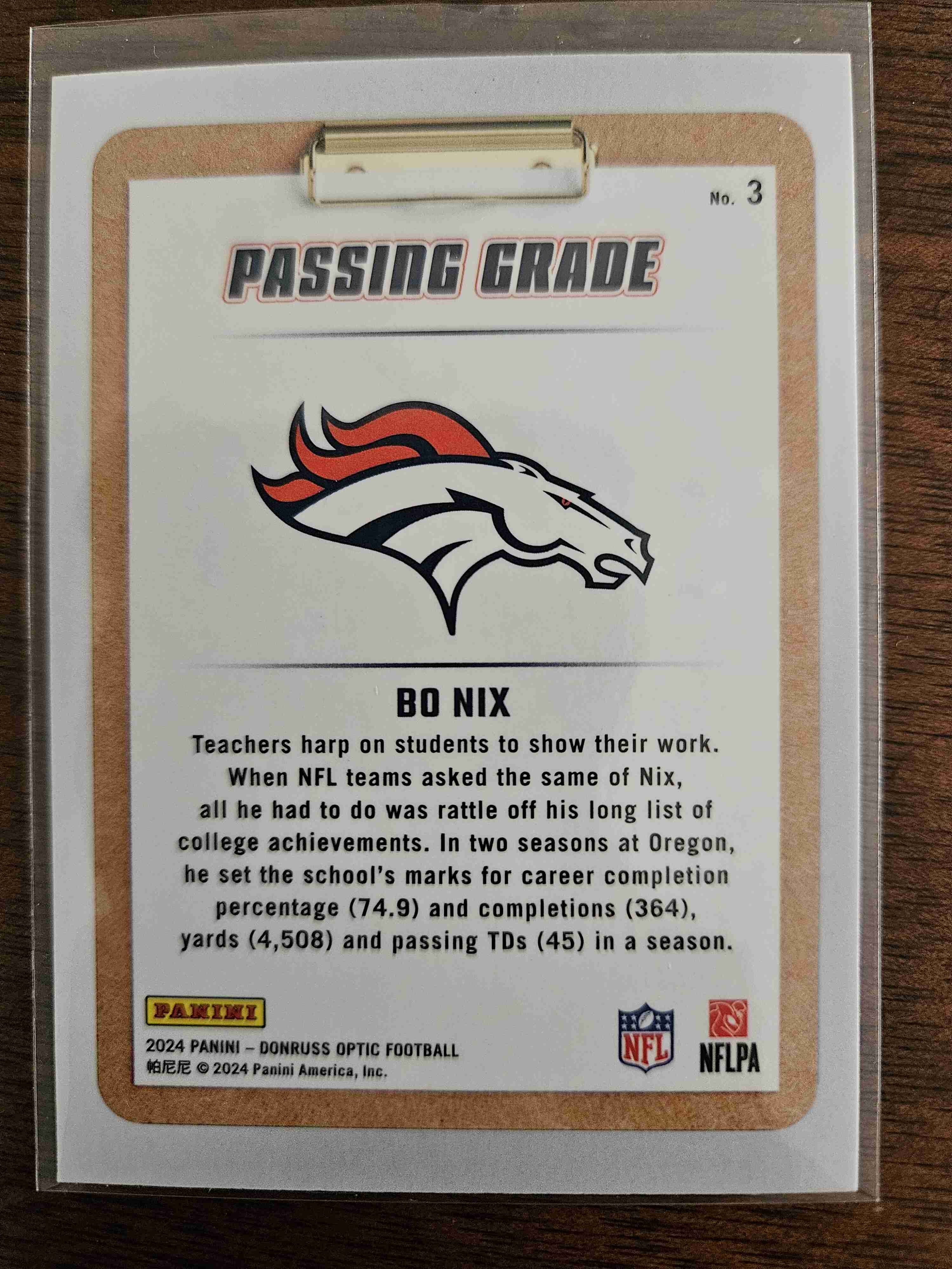 Bo Nix 2024 Donruss Optic Passing Grade Rookie