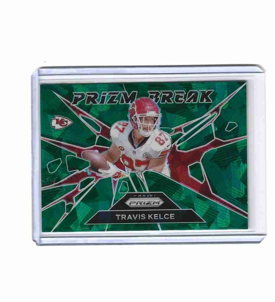 2024 Panini Prizm Travis Kelce Prizm Break Cracked Green Ice No. 1 Chiefs