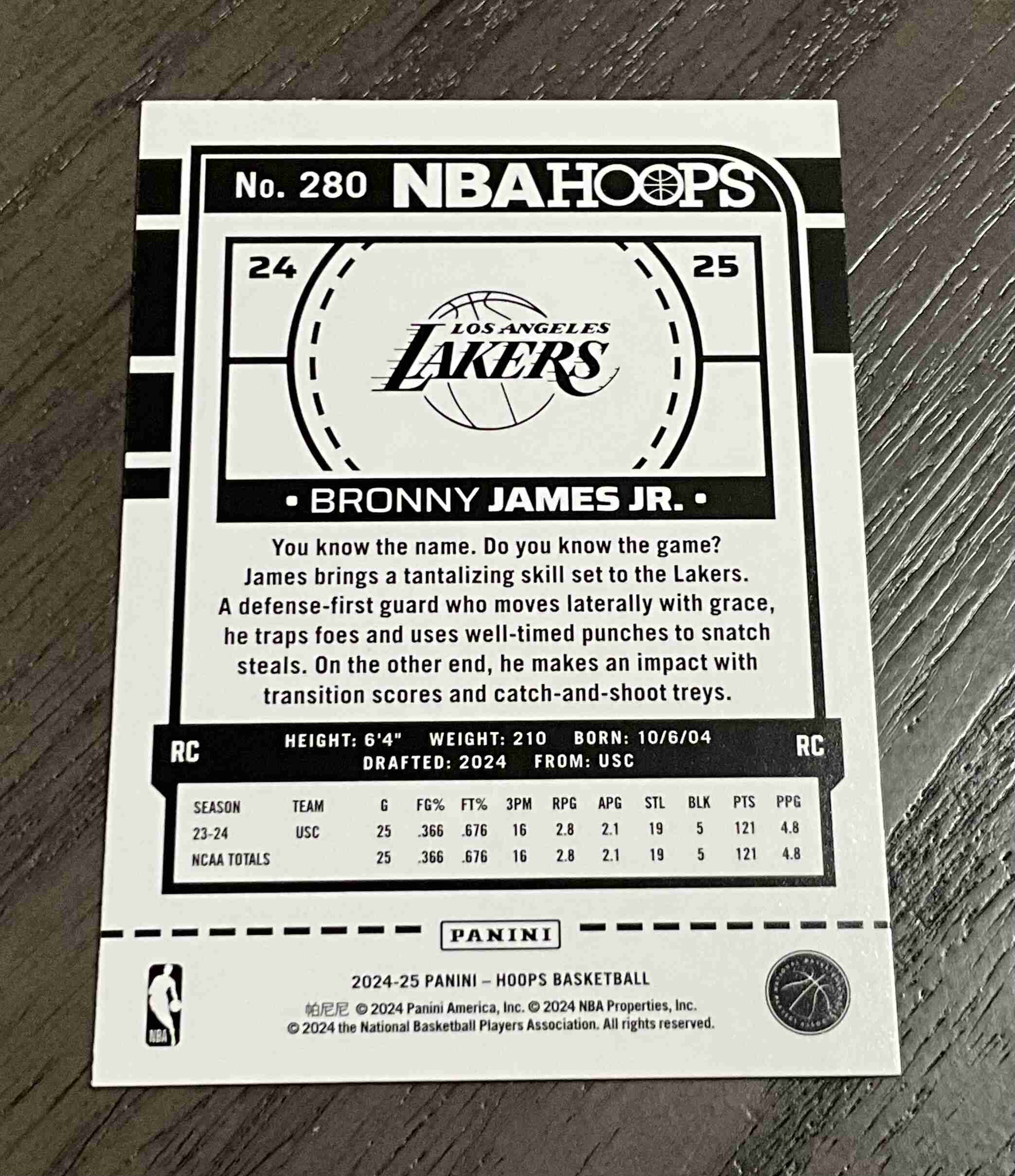 Bronny James Jr Rookie 2024-25 NBA Hoops Lakers