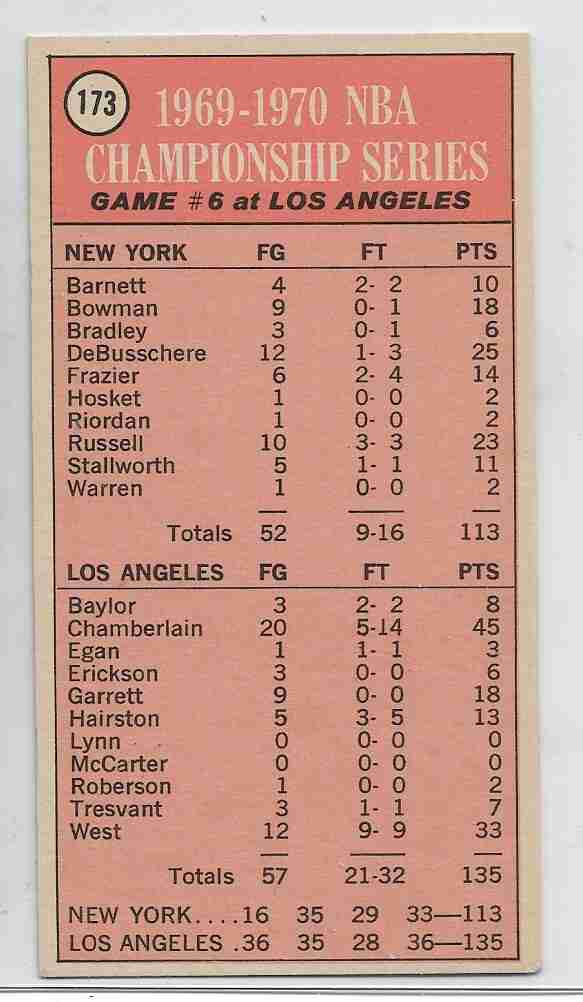 1970-71 Topps #173 ~ NBA Game #6 Wilt Chamberlain