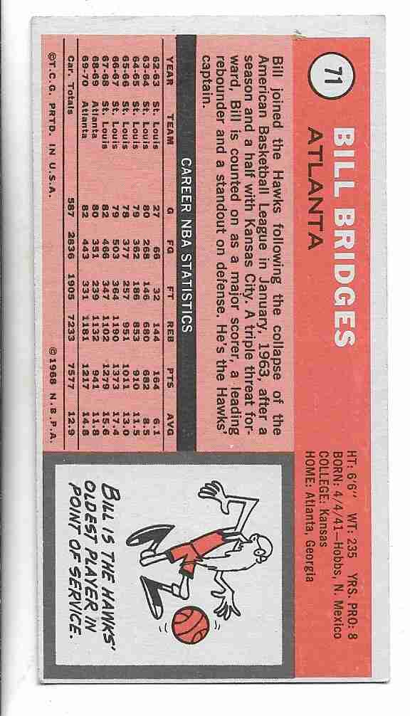 1970-71 Topps #71 ~ Bill Bridges Atlanta Hawks