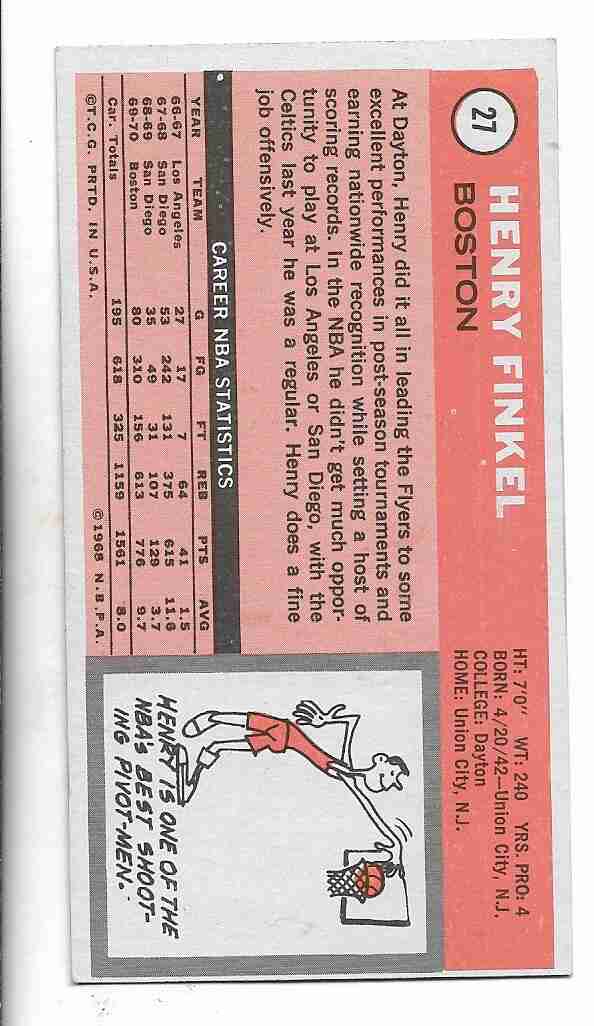 1970-71 Topps #27 ~ Henry Finkel Boston Celtics