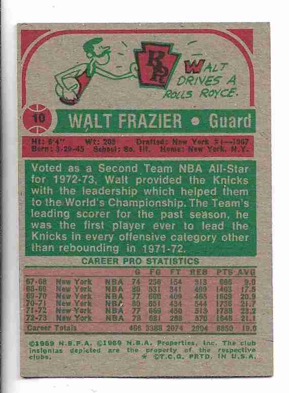 1973-74 Topps #10 ~ Walt "Clyde" Frazier New York Knicks HO