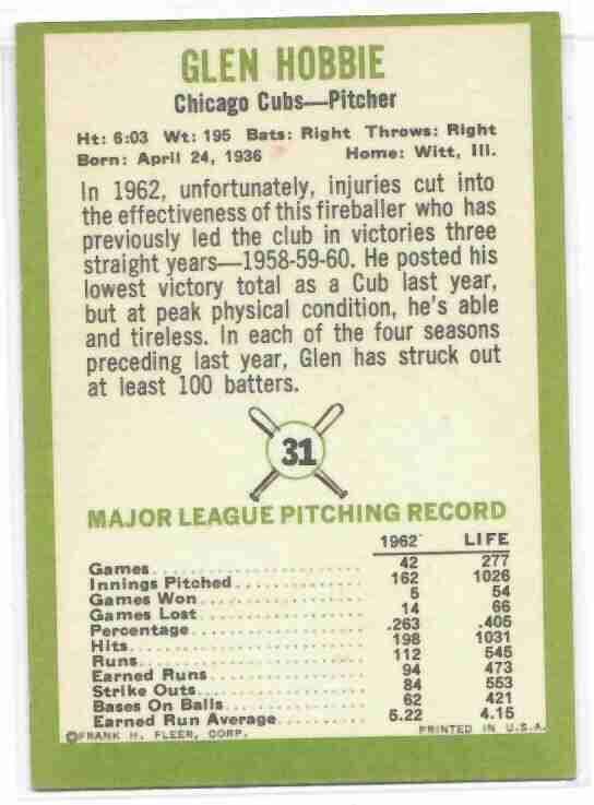 1963 Fleer (2) #28 Cottier and #31 Hobbie