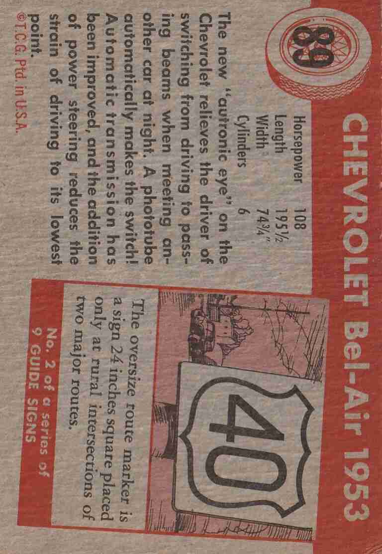 1955 Topps World on Wheels #89 Chevrolet Bel Air 1953