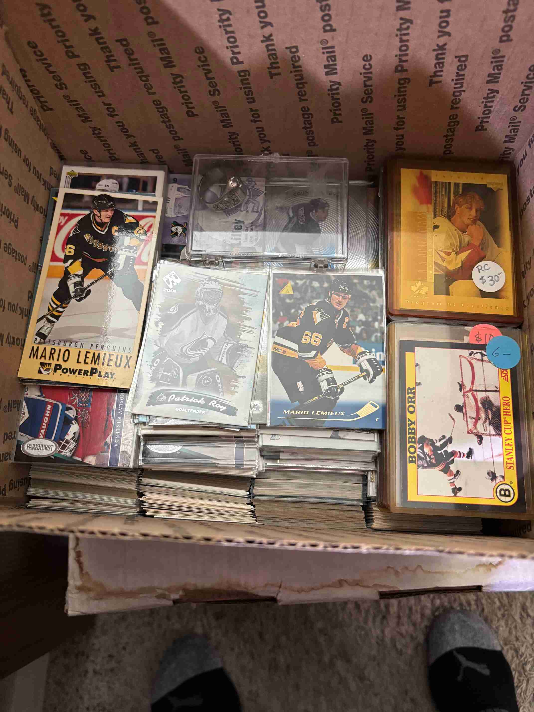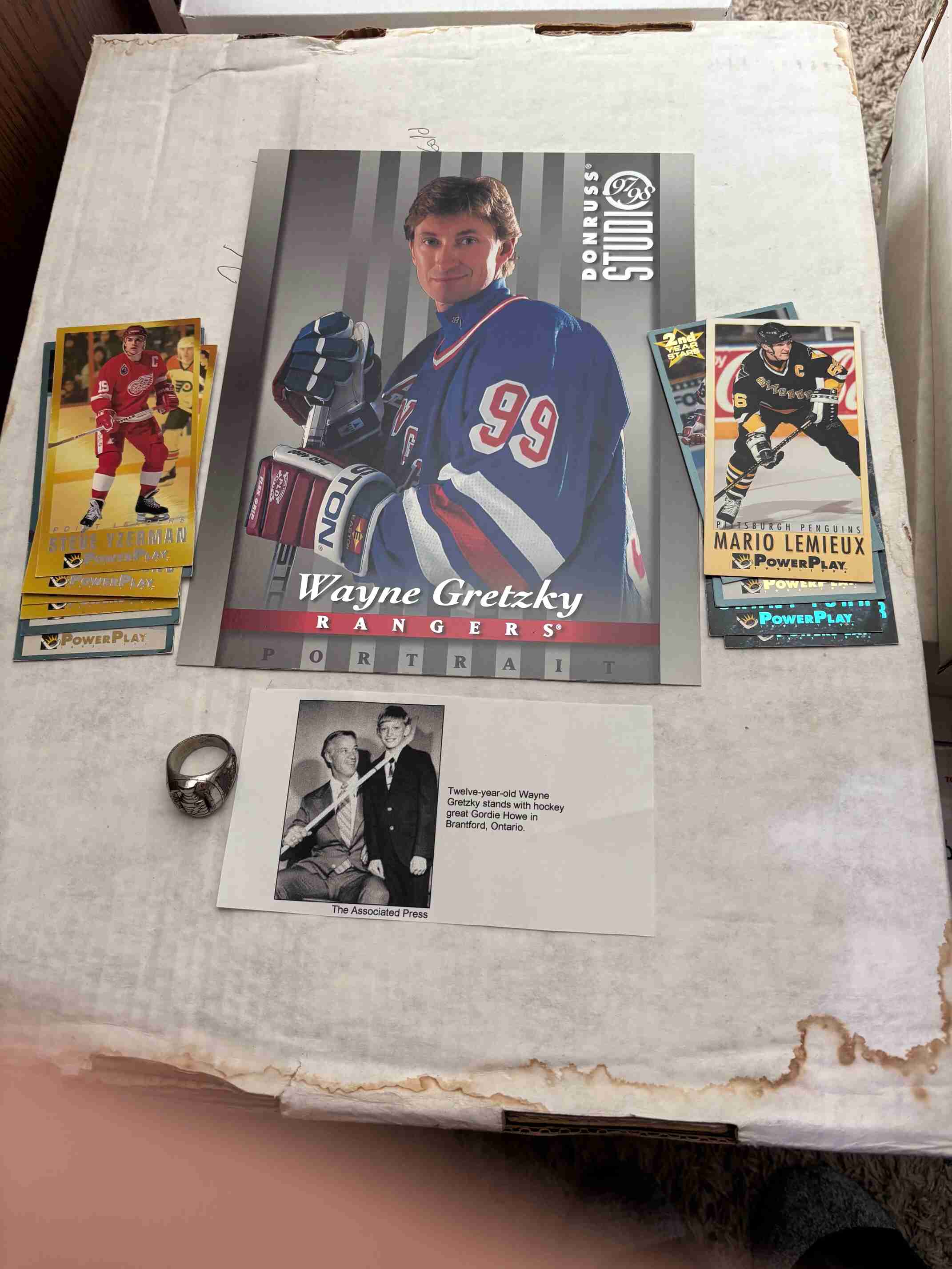 Huge clearance collection of 2500 Hockey cards including a rare Wayne Gretzky portrait card, a Tampa Bay Lightning Stanley Cup fan ring, and loaded with vintage, Rookies and stars, all in great condition. You will receive everything shown in the photos and more. I am having a complete clearance of my 2,000,000 card collection so please check out my other auctions for more great deals.