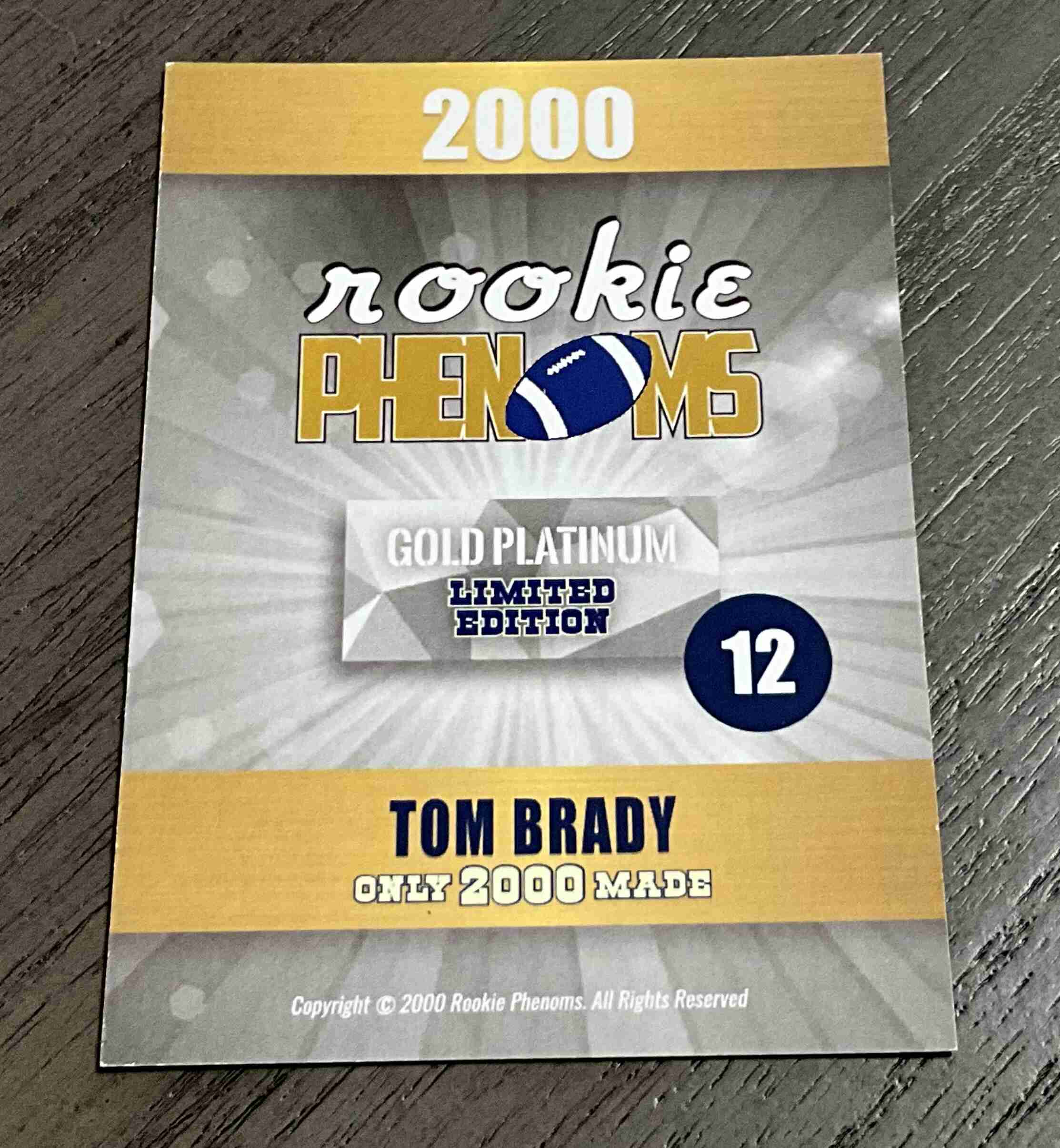 Tom Brady Novelty Card 2000 Rookie Phenoms Patriots