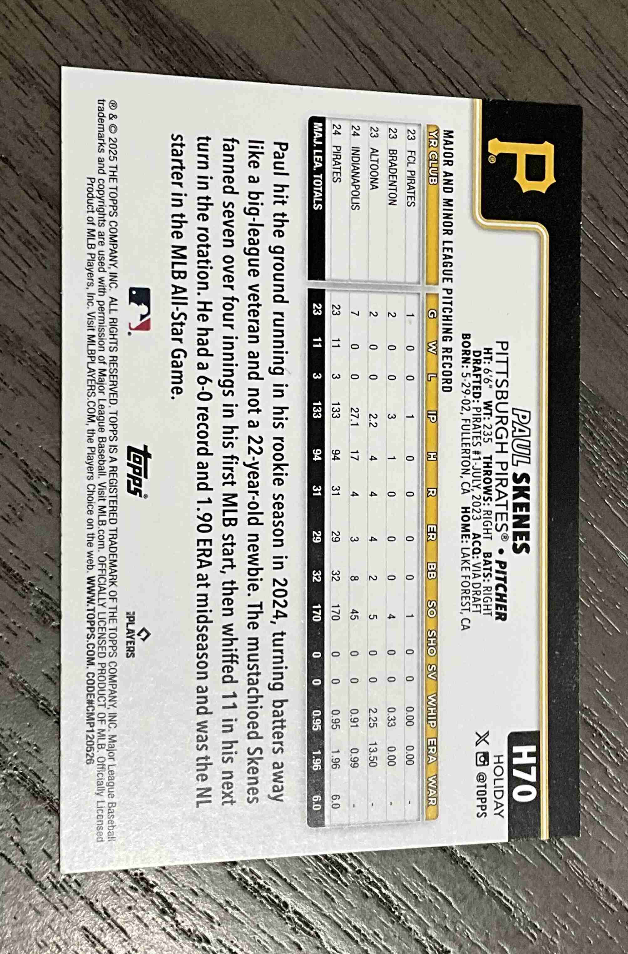 Paul Skenes 2025 Topps Holiday H70 All Star Rookie Cup