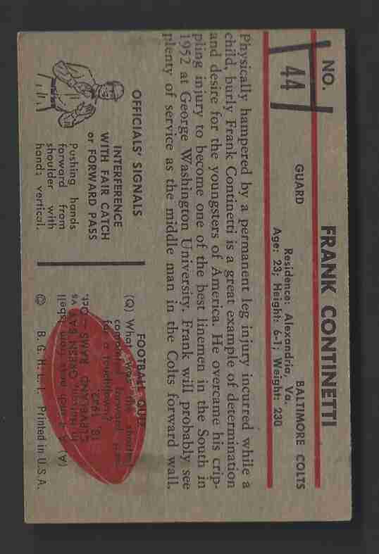 1953 Bowman Frank Continetti (SP) -#44- Colts