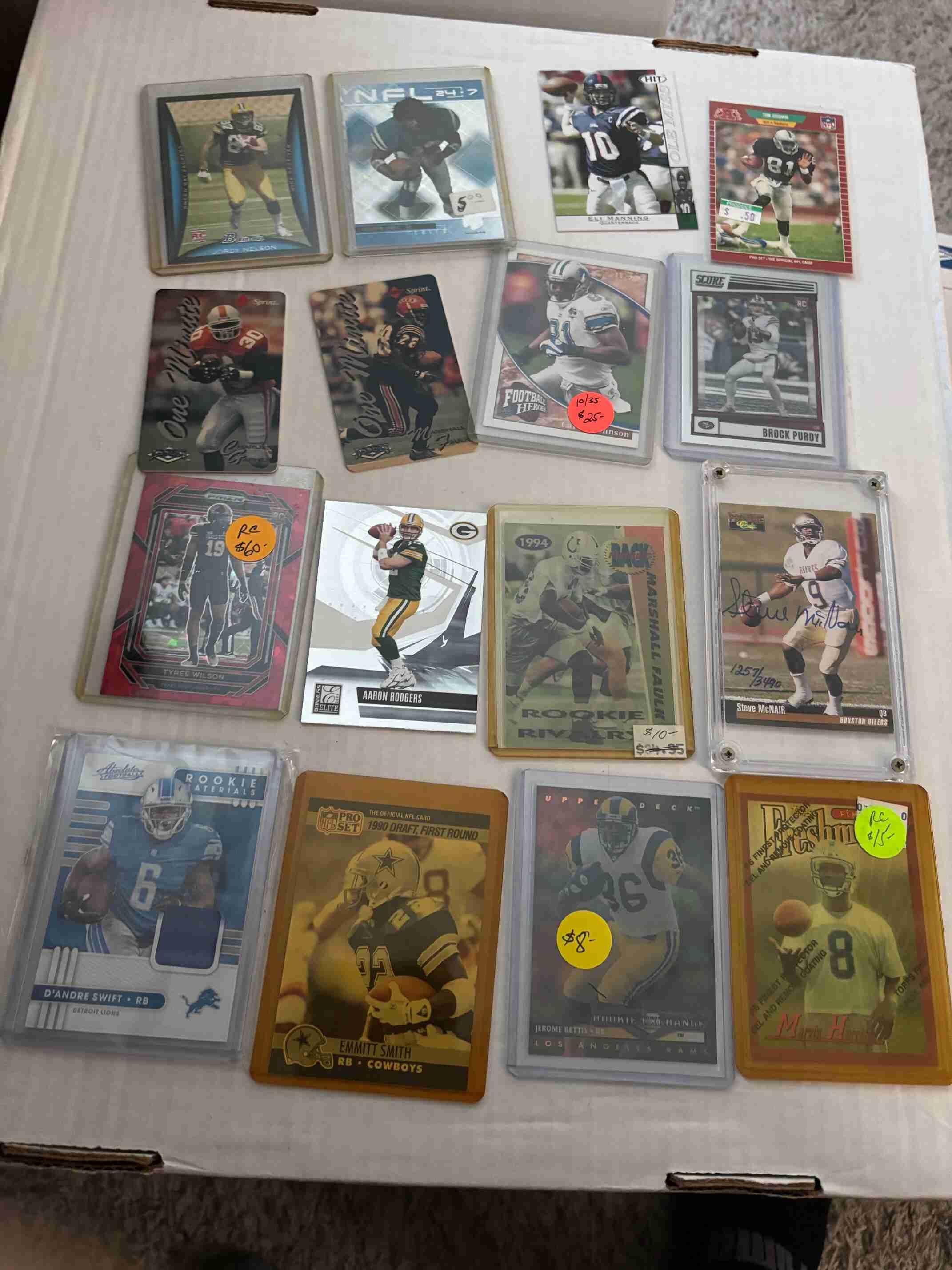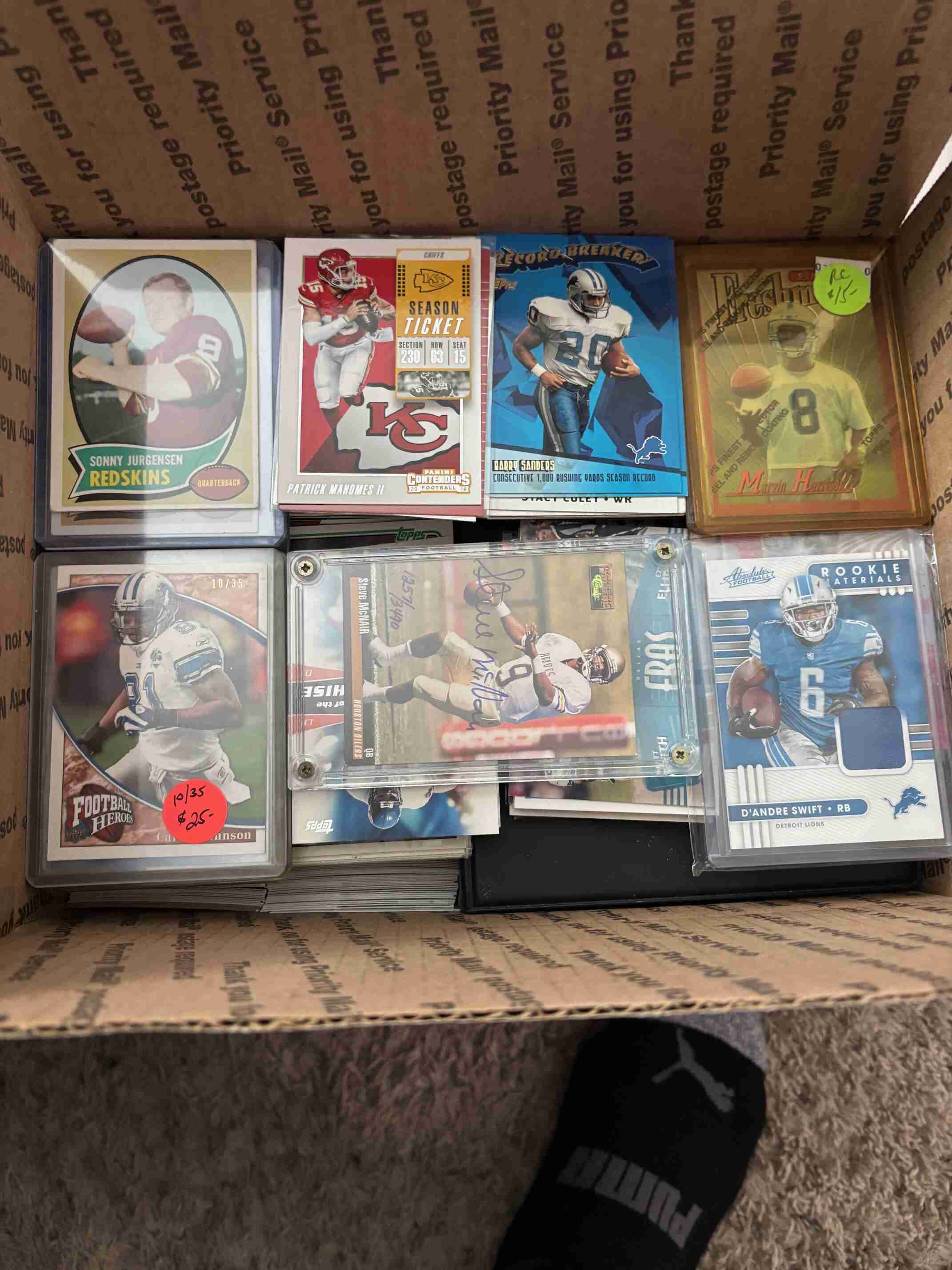 Huge clearance collection of 2500 Football cards loaded with high value vintage, Rookies, Stars, and uncut sheets all in great condition. You will receive everything shown in the photos and more. I am having a complete clearance of my 2,000,000 card collection, so please check out my other auctions for more great deals.