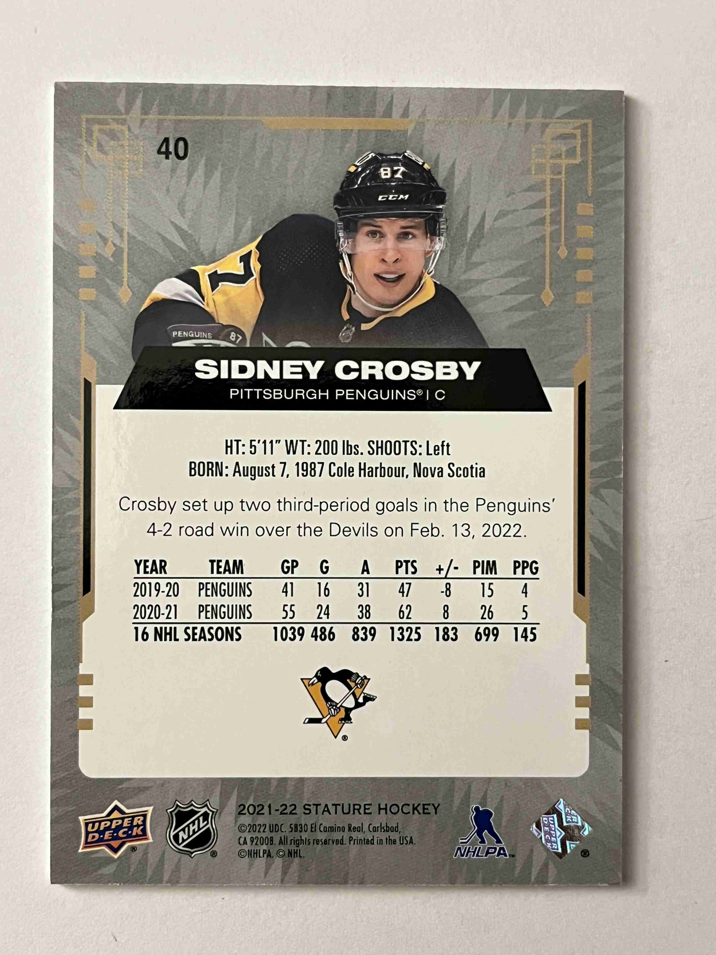 Sidney Crosby 2021-22 UD Stature Base #40
