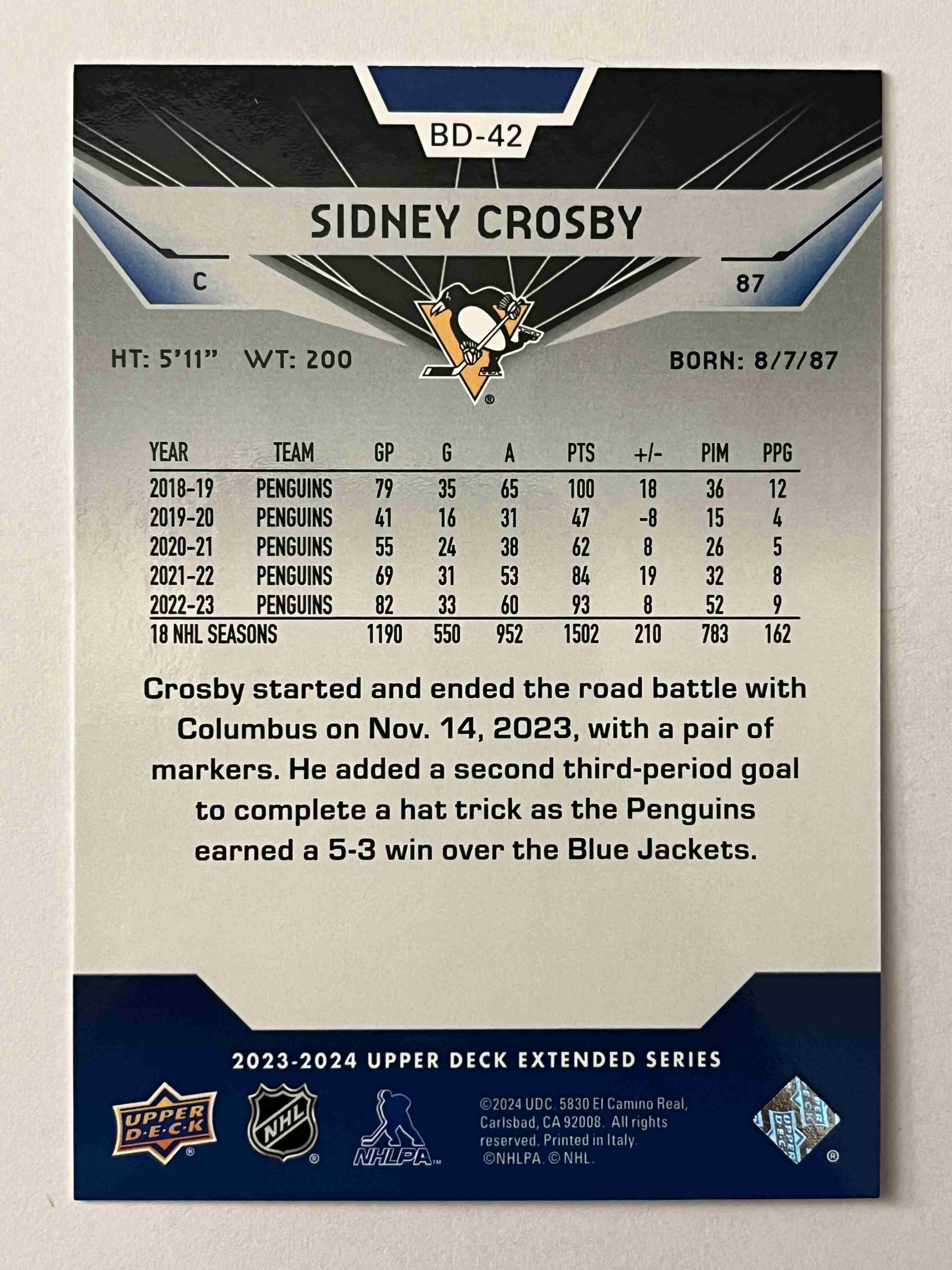 Sidney Crosby 2023-24 UD Extended 07/08 Black Diamond Quad