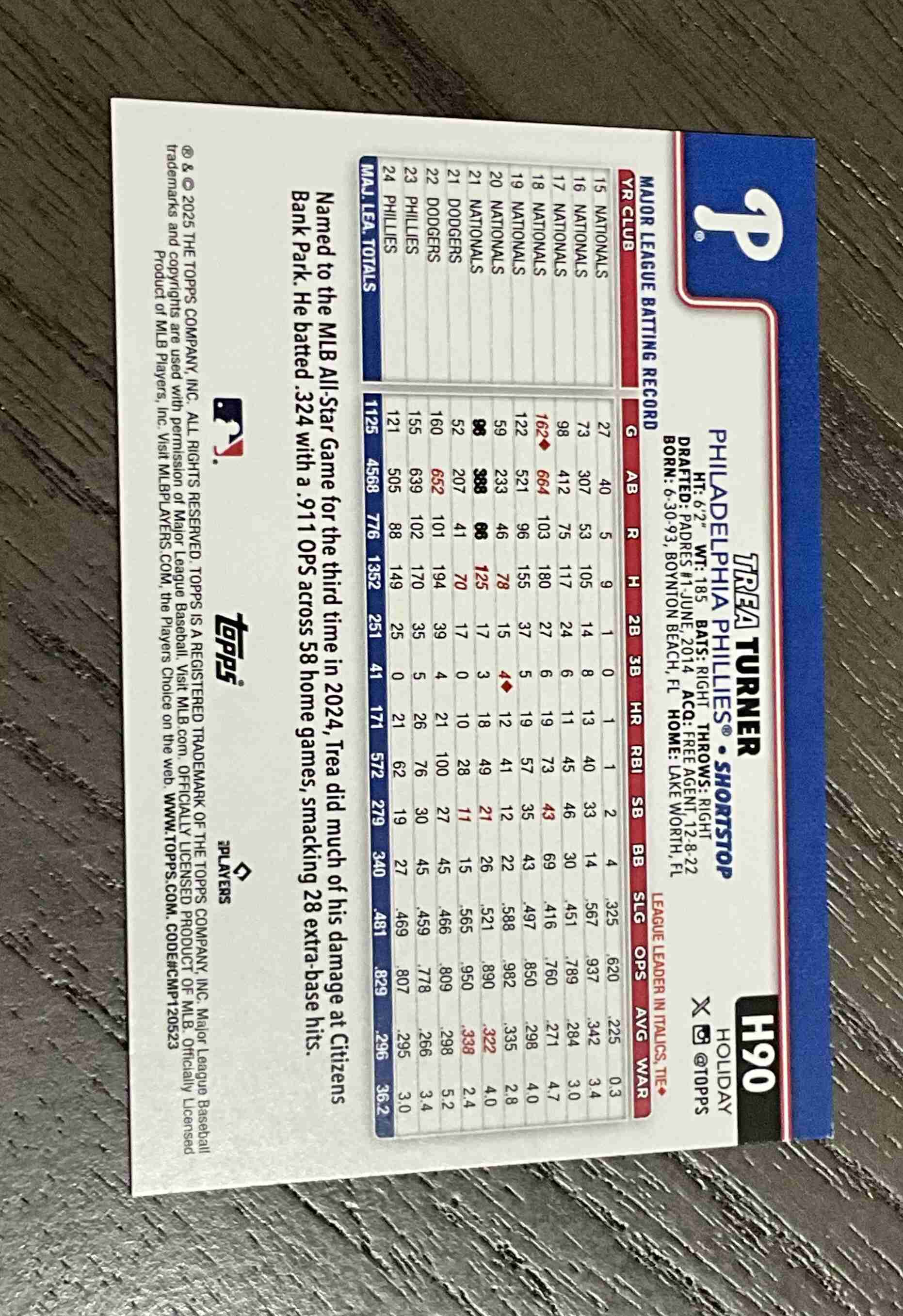 Trea Turner Santa Hat SP 2025 Topps Holiday H90 Phillies