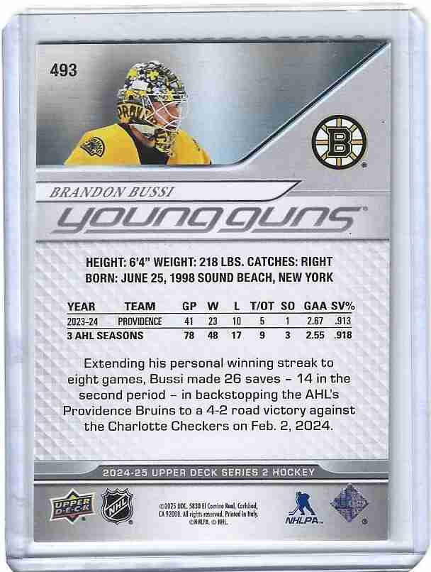 2024/25 UD 2 #493 BRANDON BUSSI YOUNG GUNS
