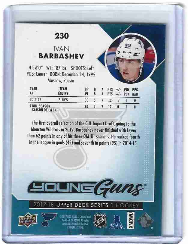 2017/18 UD 1 #230 IVAN BARBASHEV YOUNG GUNS