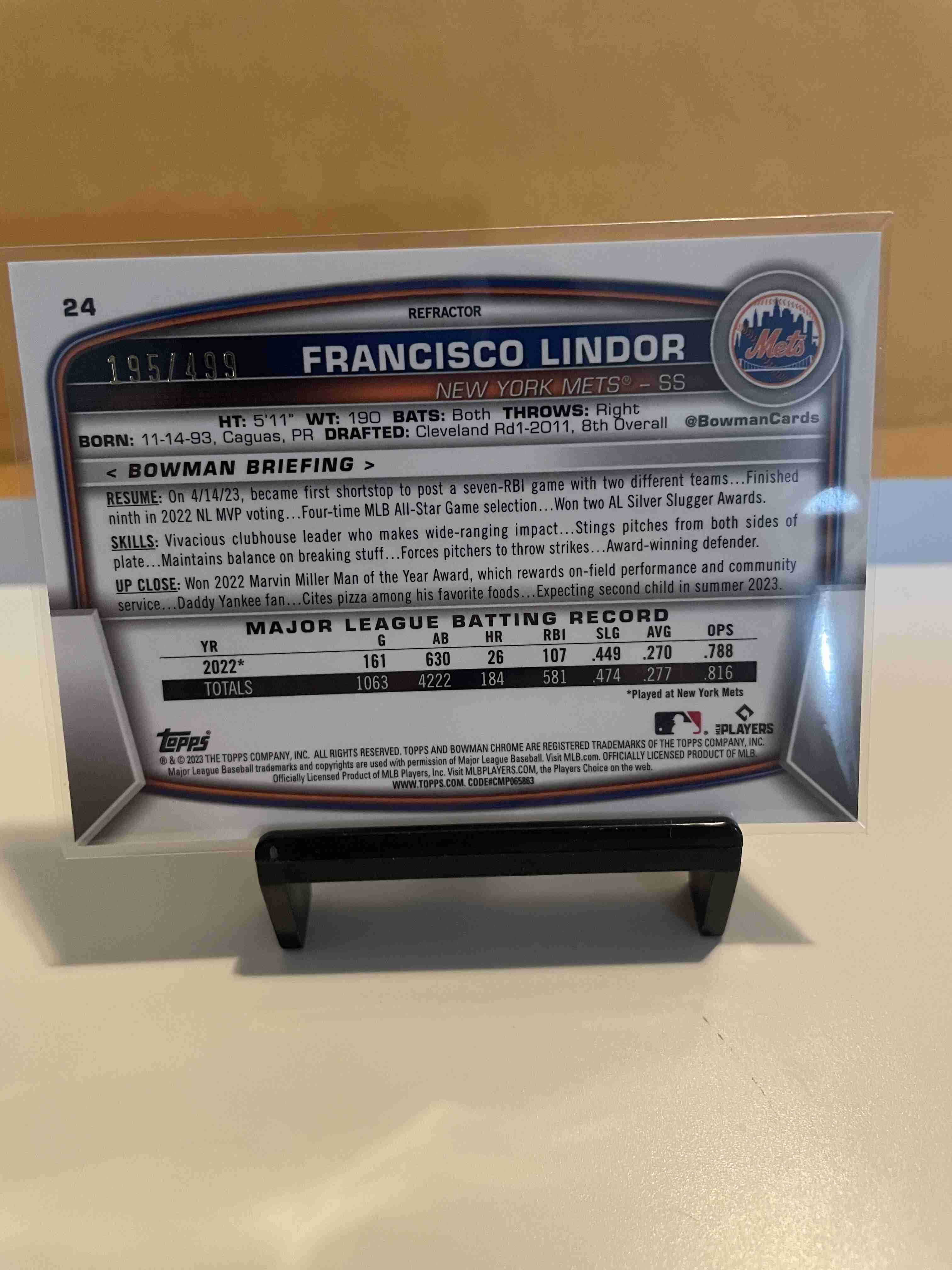 Francisco Lindor 2023 Bowman Chrome #'d 195/499