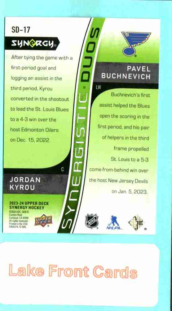 Jordan Kyrou/Pavel Buchnevich 2023-24 UD Synergy Synergistic Duos #SD-17 Blues 878/999