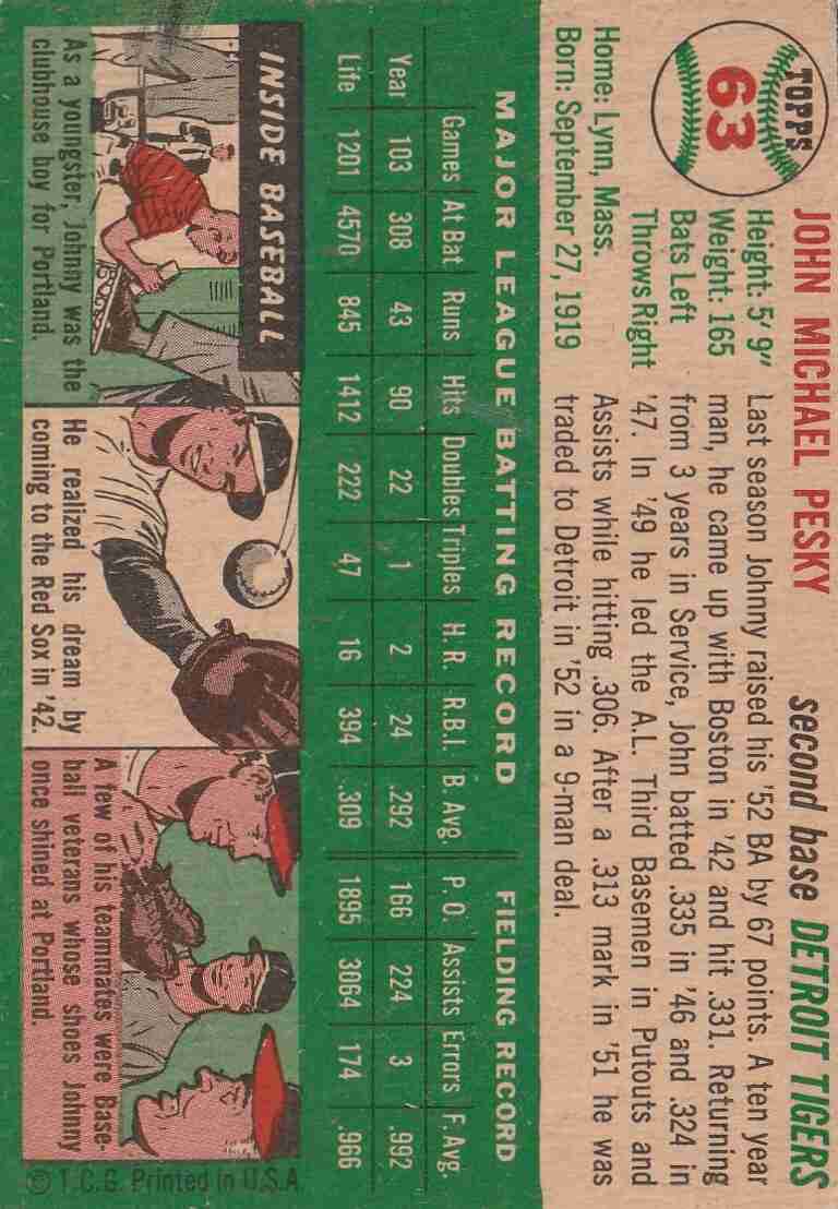 1954 Topps Johnny Pesky Tigers