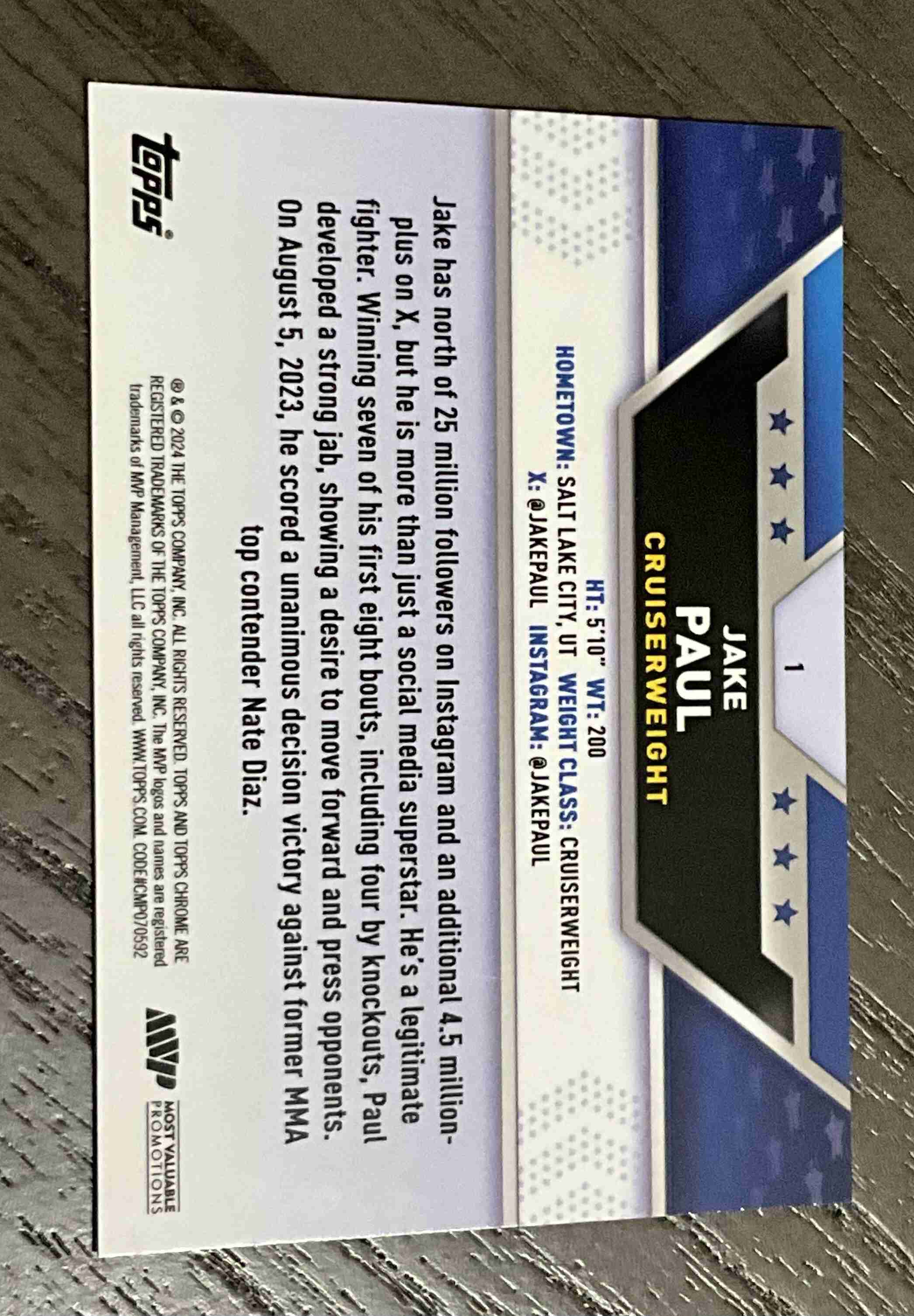 Jake Paul Rookie 2024 Topps Chrome Boxing # 1