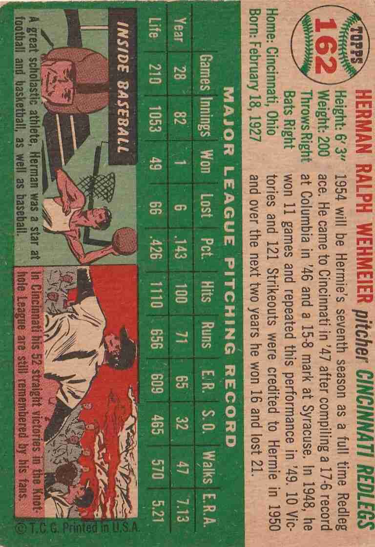 1954 Topps #162 Herman Wehmeier Redlegs