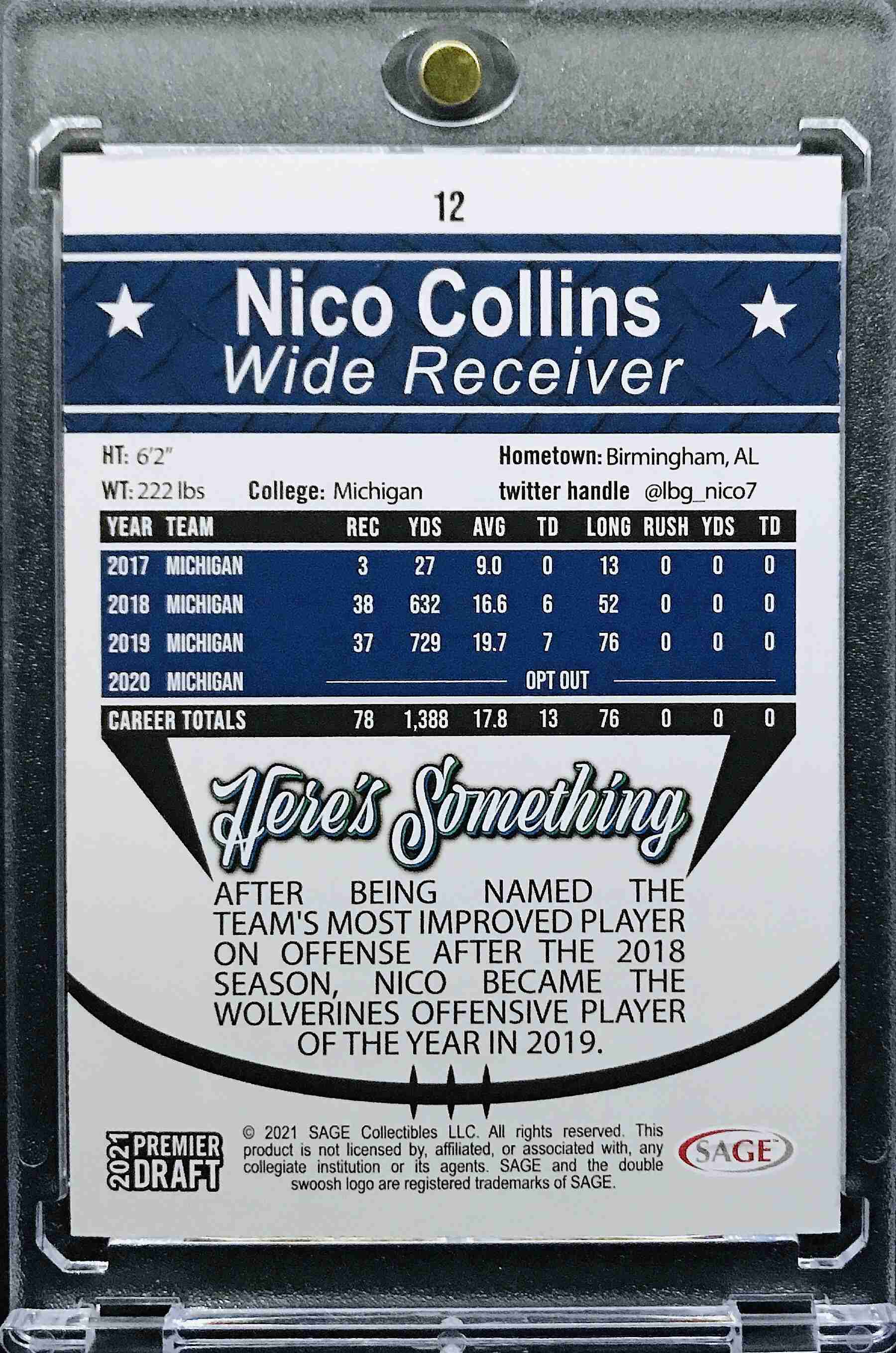 NICO COLLINS RC - 2021 Sage Premier Draft Gold #12