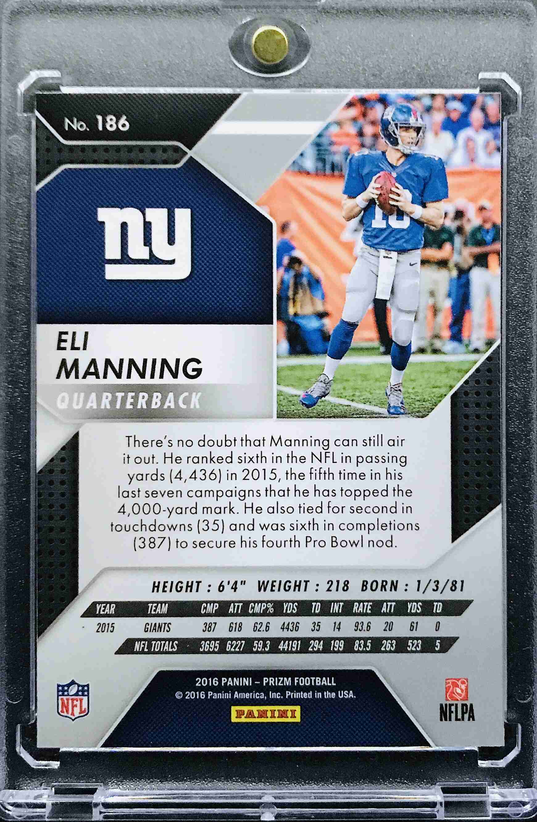 ELI MANNING - 2016 Panini Prizm #186 - NEW YORK GIANTS