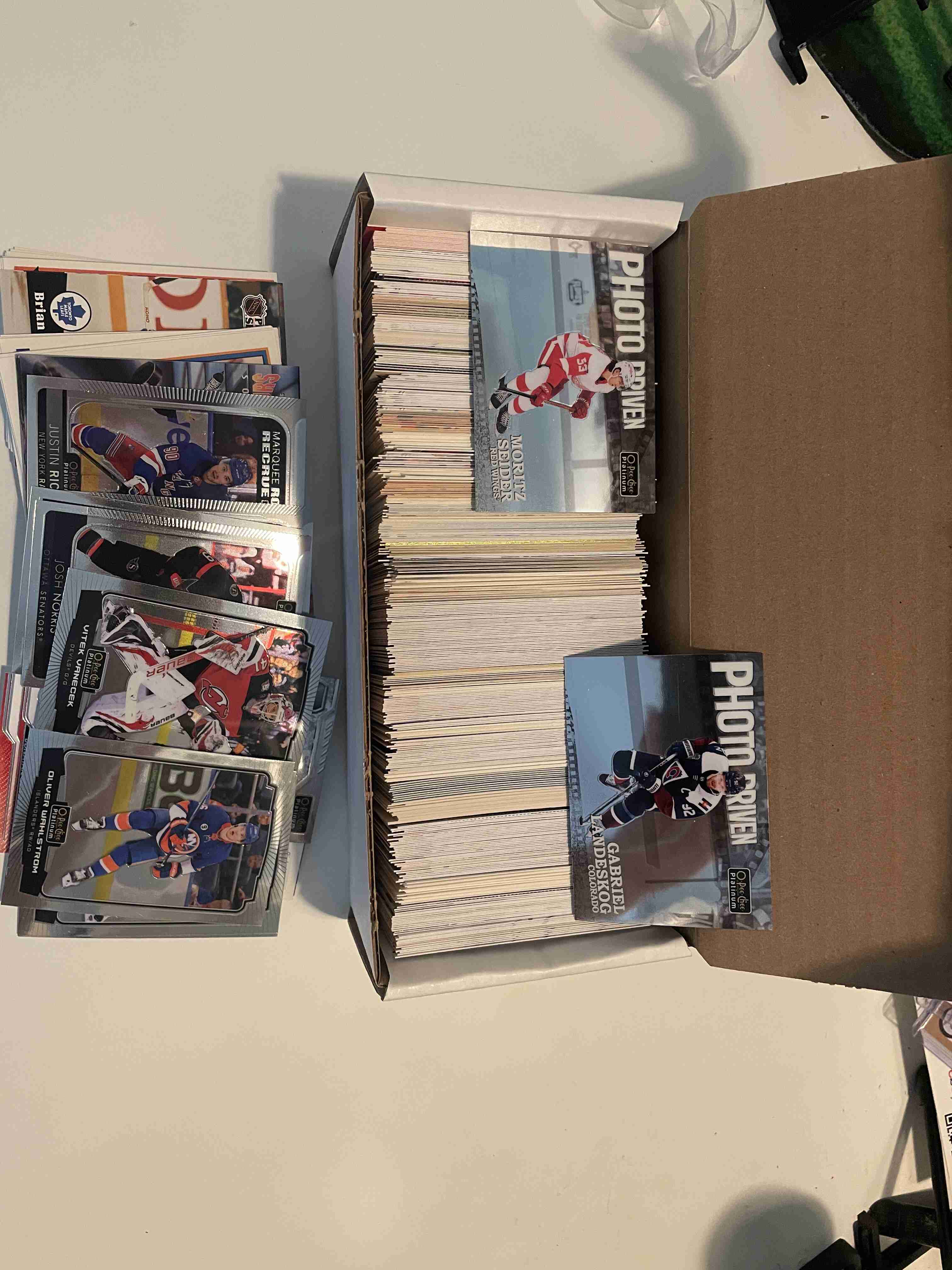 Large lot of Hockey Cards. the box is 550 count. So guessing closer to 600 total. Various years and players. No Autos or mems. Inserts, stars base. Some rookies I am sure, didn't look thru the whole lot