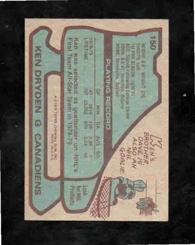 1979/80 Topps # 150 HOFer DEN DRYDEN Canadiens