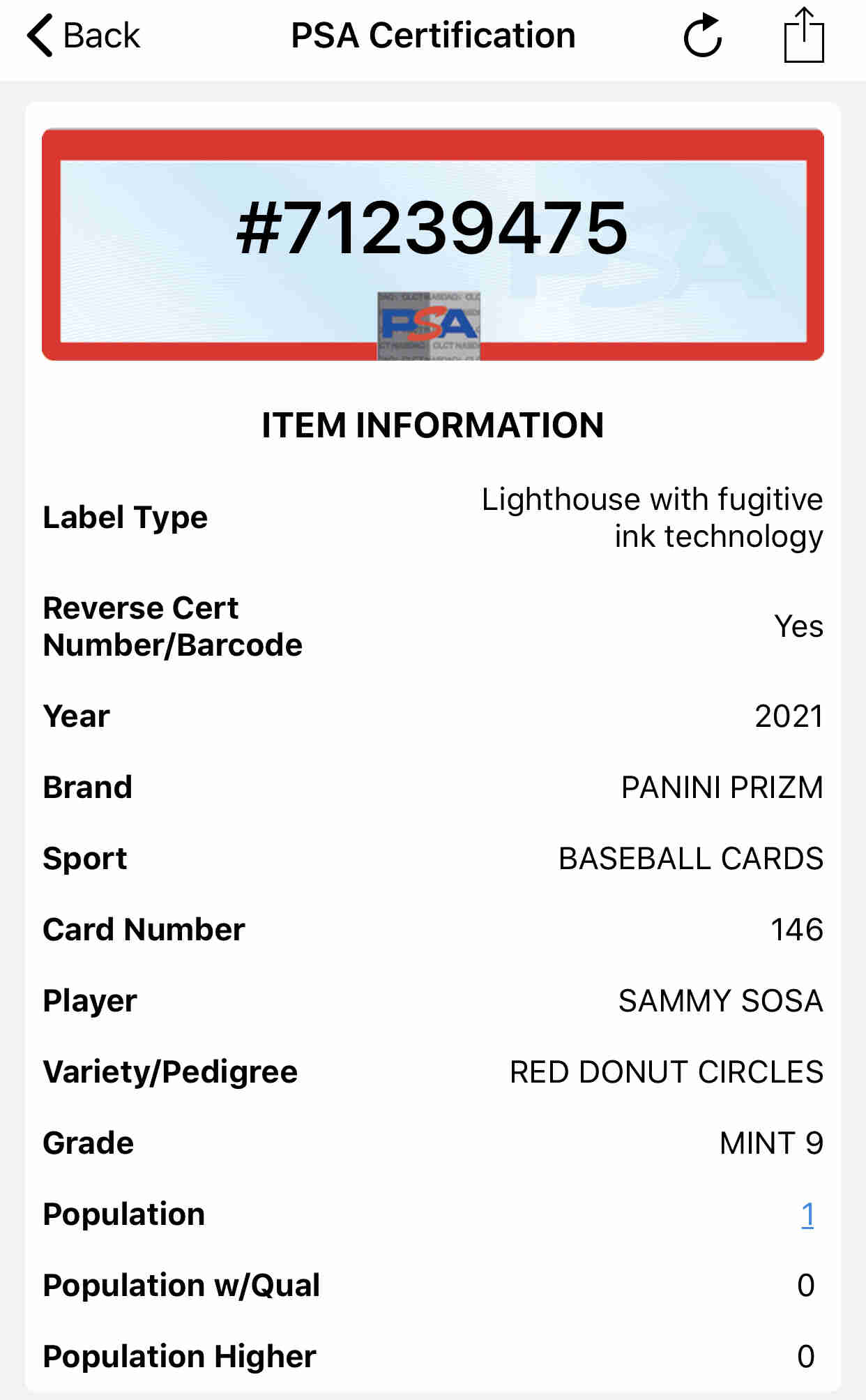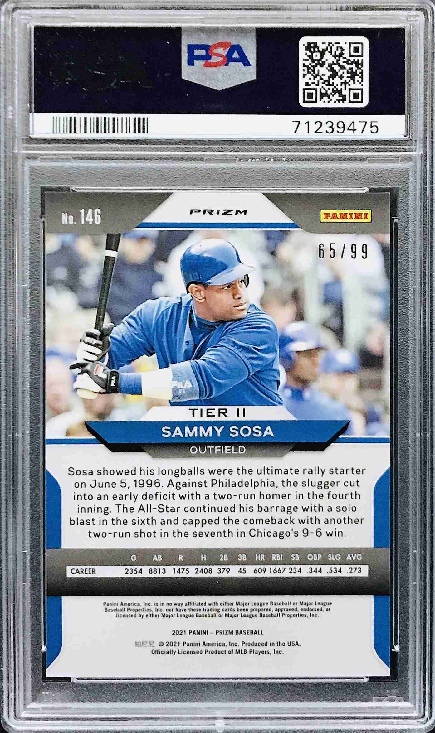 SAMMY SOSA - 2021 Prizm Red Donut Circles #146 - /99 PSA 9