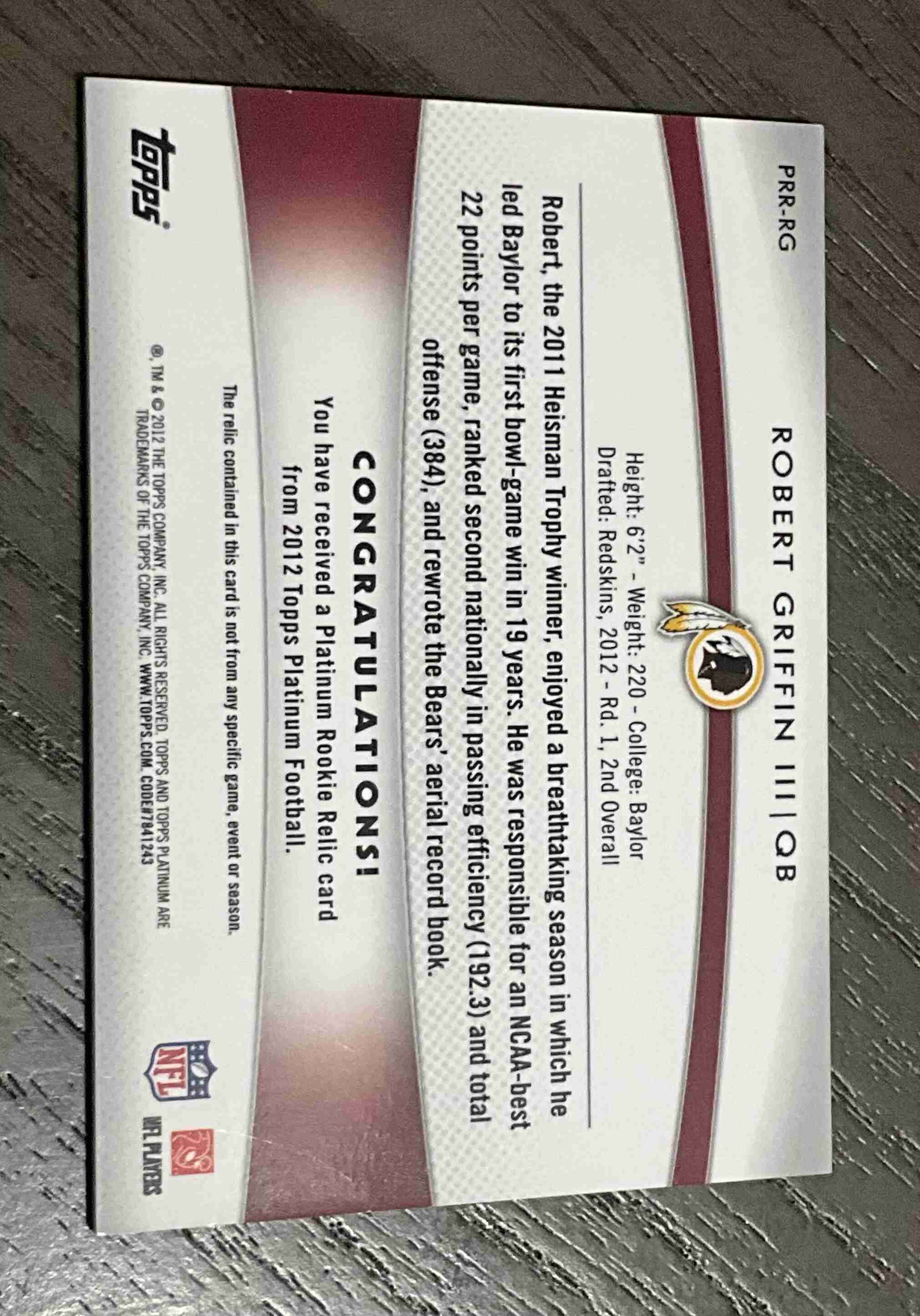 Robert Griffin III Rookie Relic 2012 Topps Platinum