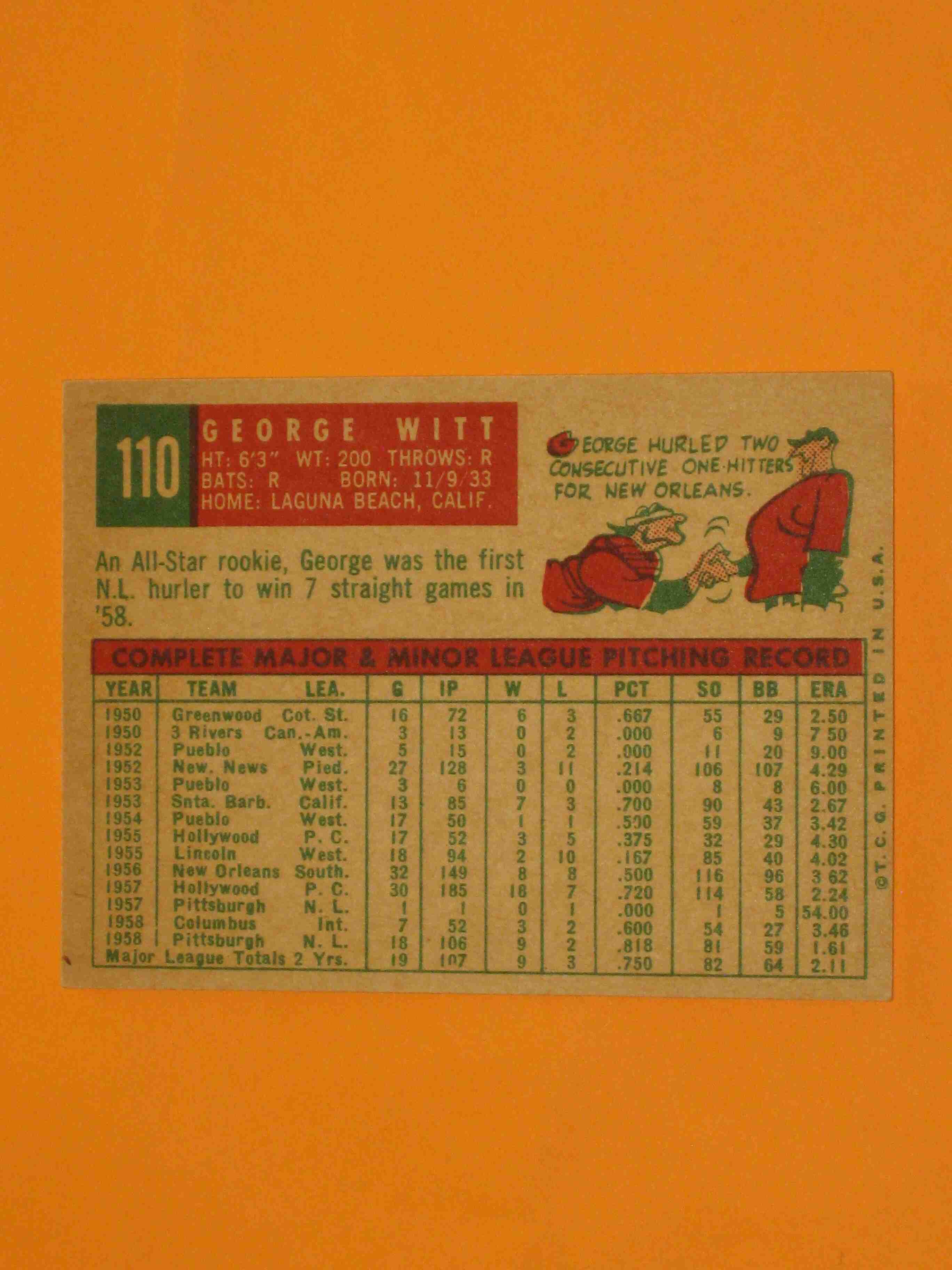 1959 Topps George Witt #110 Pittsburgh Pirates NICE