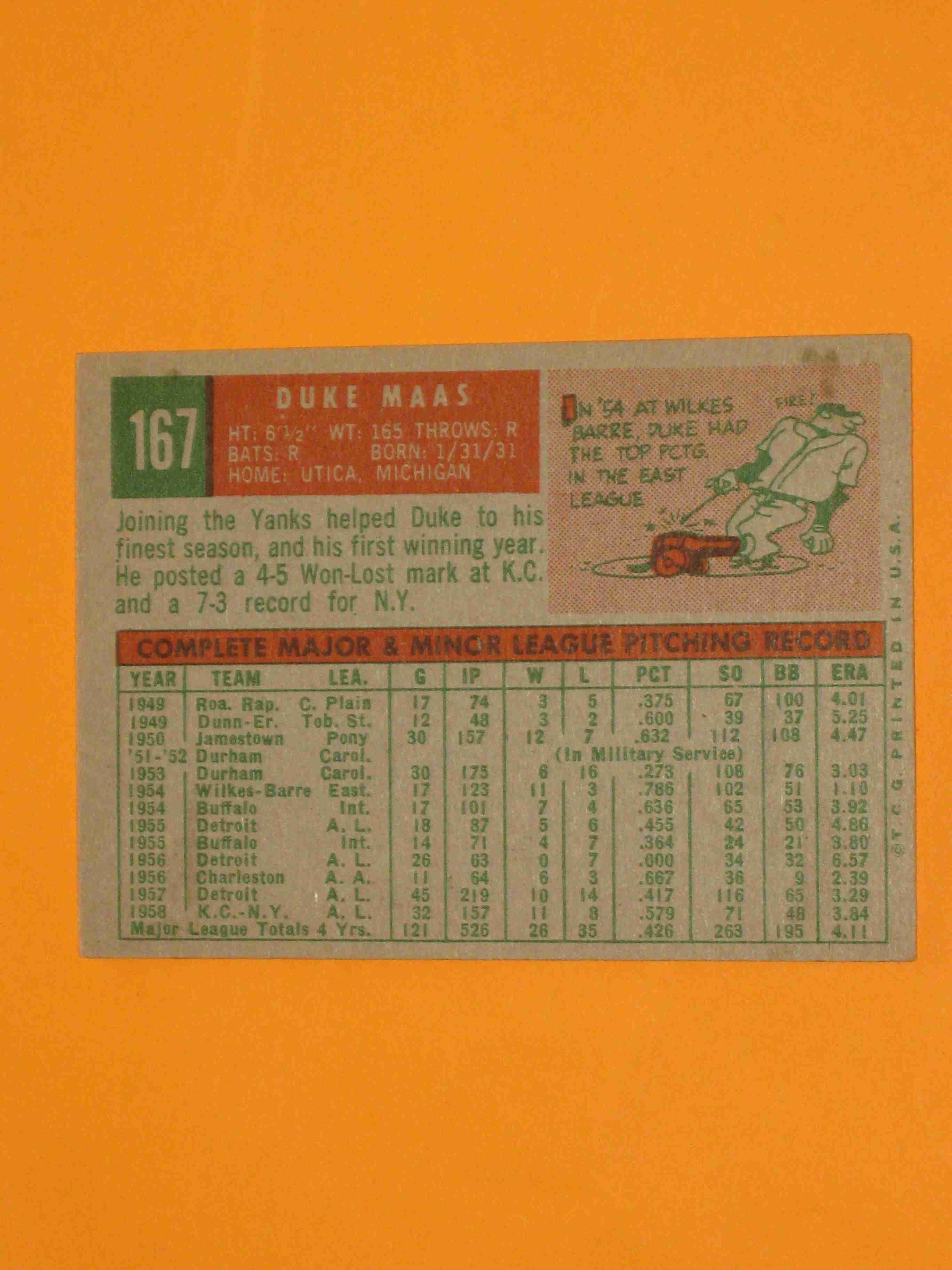 1959 Topps Duke Maas #167 New York Yankees NICE