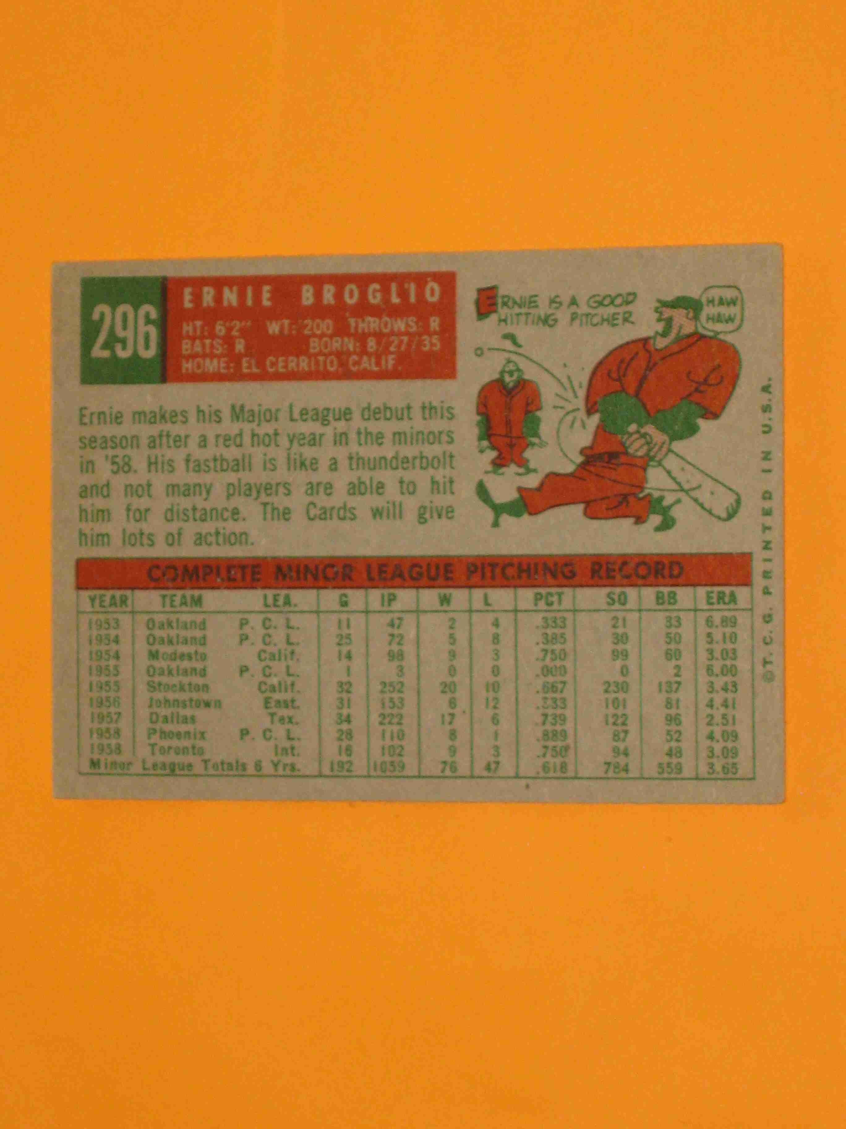 1959 Topps Ernie Broglio #296 St Louis Cardinals NICE