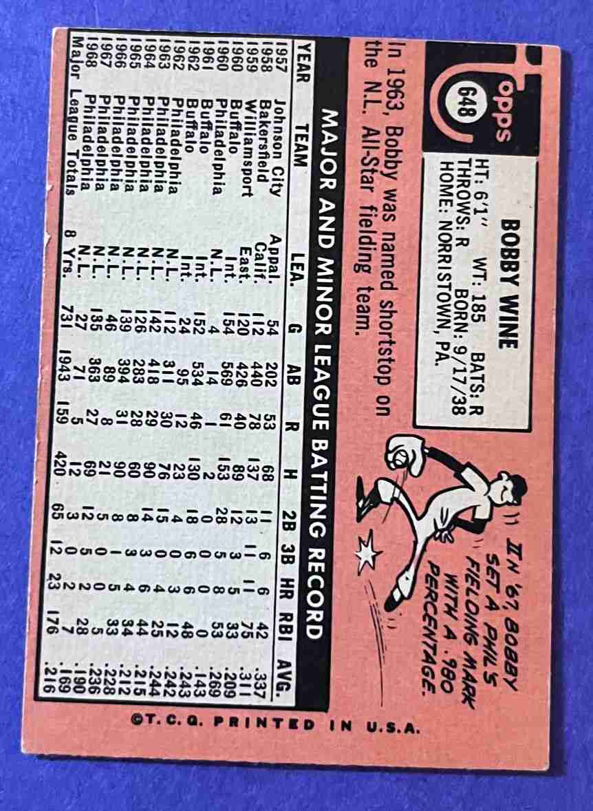 69 Topps BOBBY WINE Hi #648 ++