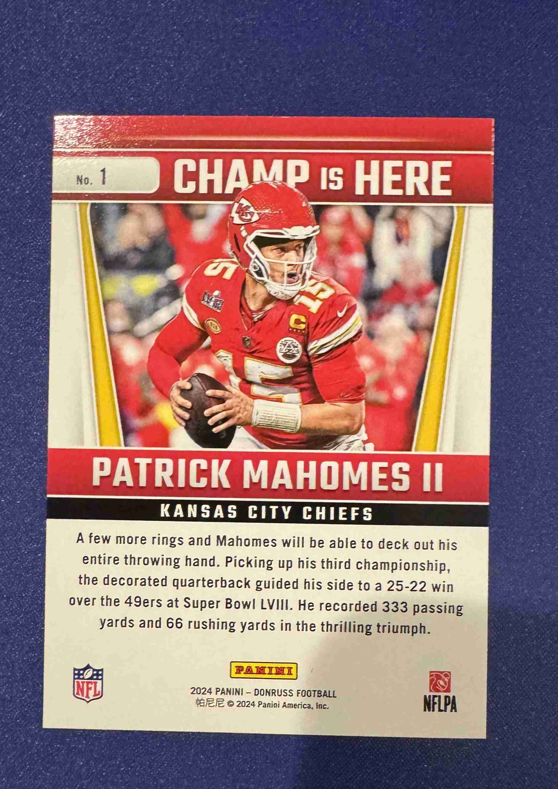 Patrick Mahomes! Champ Is Here! 2024 Donruss Insert!