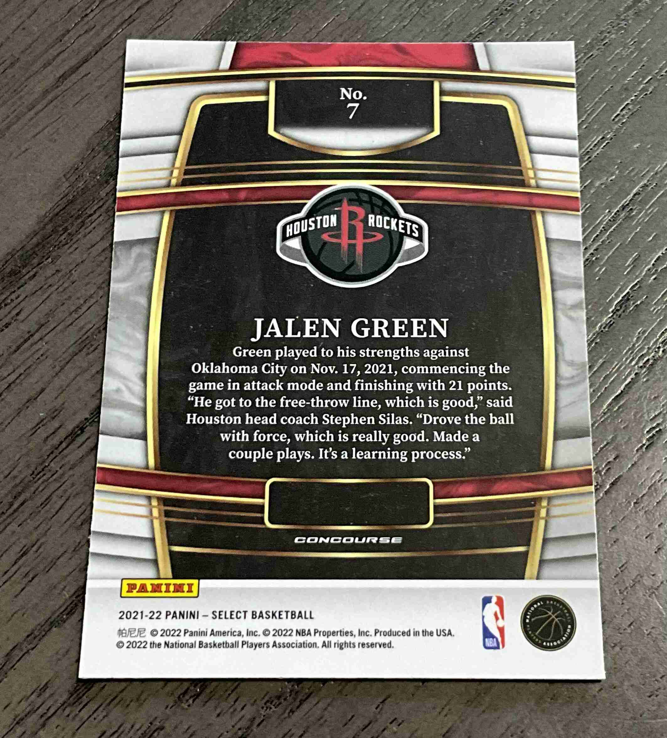 Jalen Green Rookie 2021-22 Select Houston Rockets