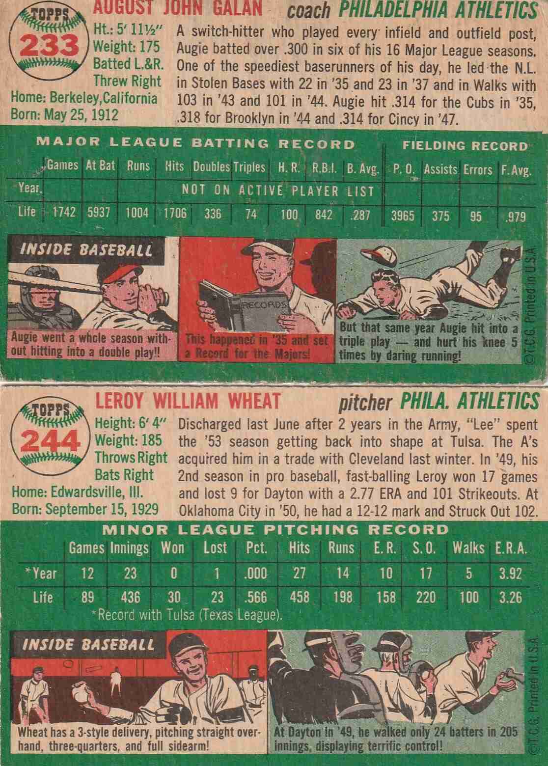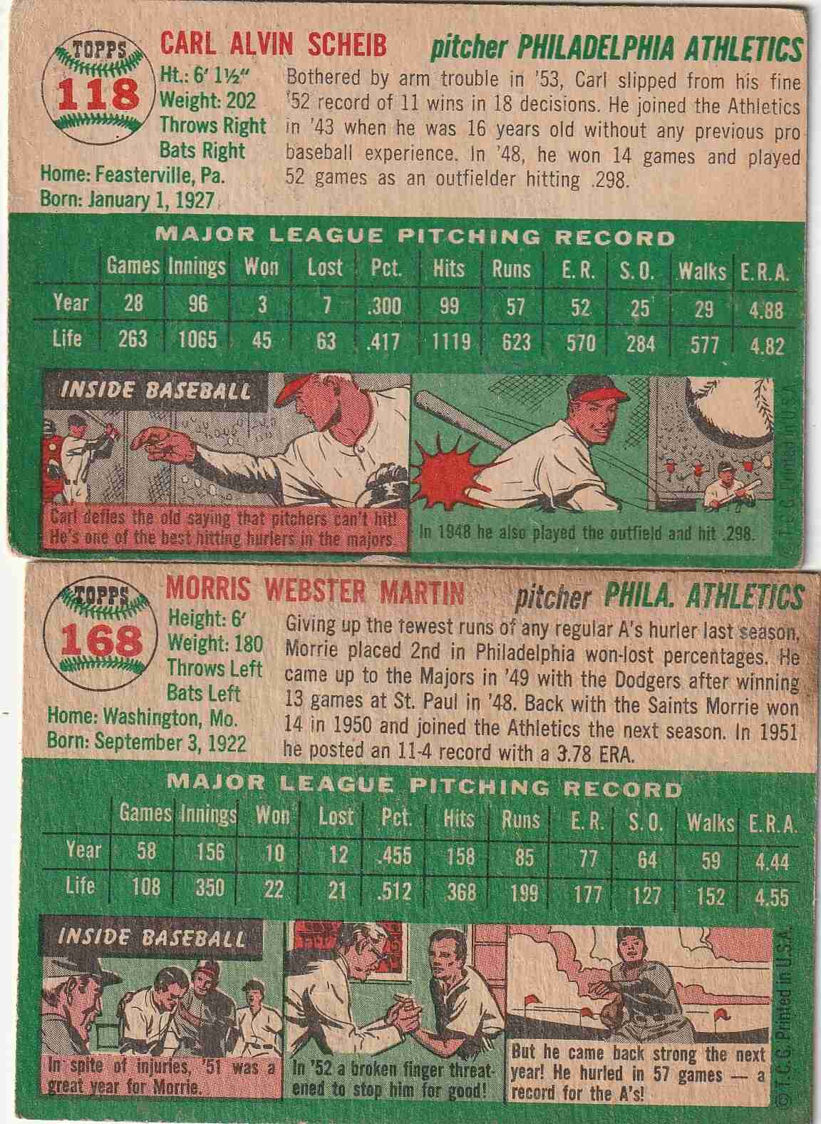 4-1954 Topps Philadelphia Athletics #'s 118 168 233 244