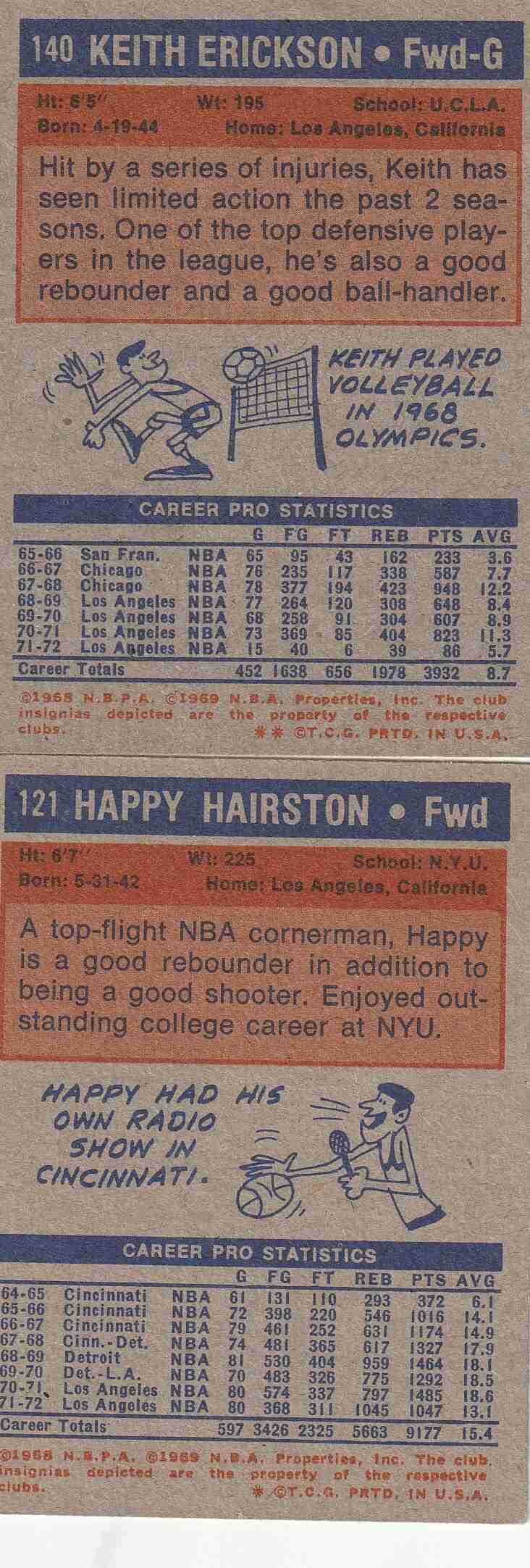 2-1972-'73 Topps LA Lakers #'s 121 140