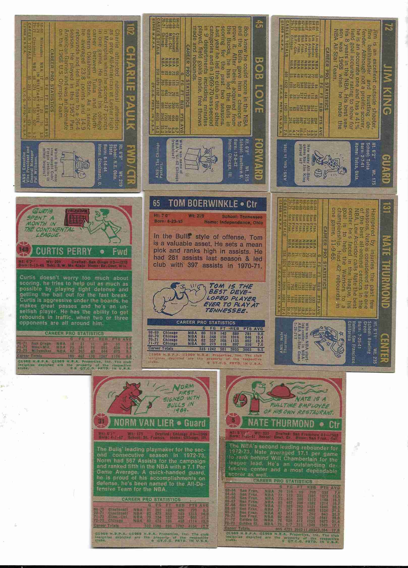 VG/EX, 1972 Charlie Paulk, Bob Love, Jim King, Nate Thurmond, 1973 Tom Boerwinkle, 1974 Curtis Perry, Nate Thurmond, Norm Van Lier