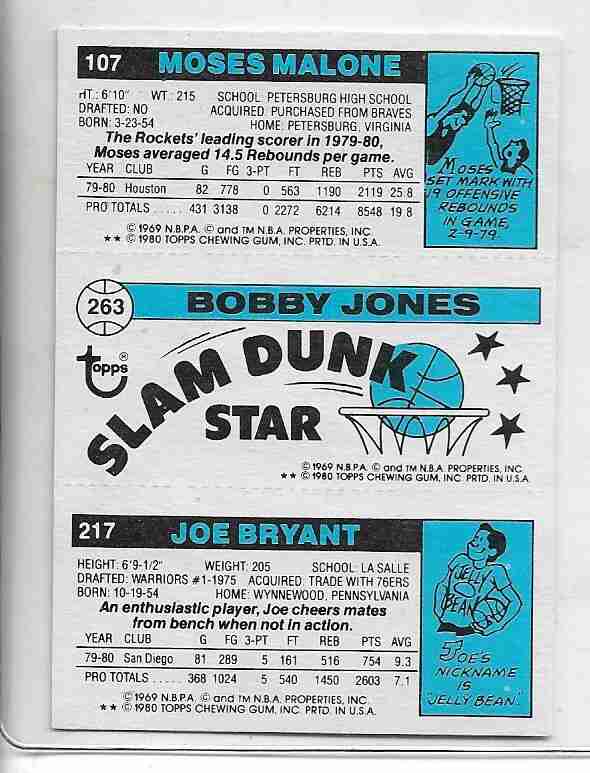 1981 Topps ~ 3 in 1 W/Moses Malone, Bobby Jones, Joe Bryant