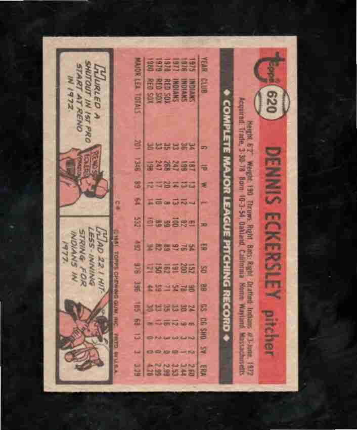 1981 Topps # 620 DENNIS ECKERLEY Red Sox