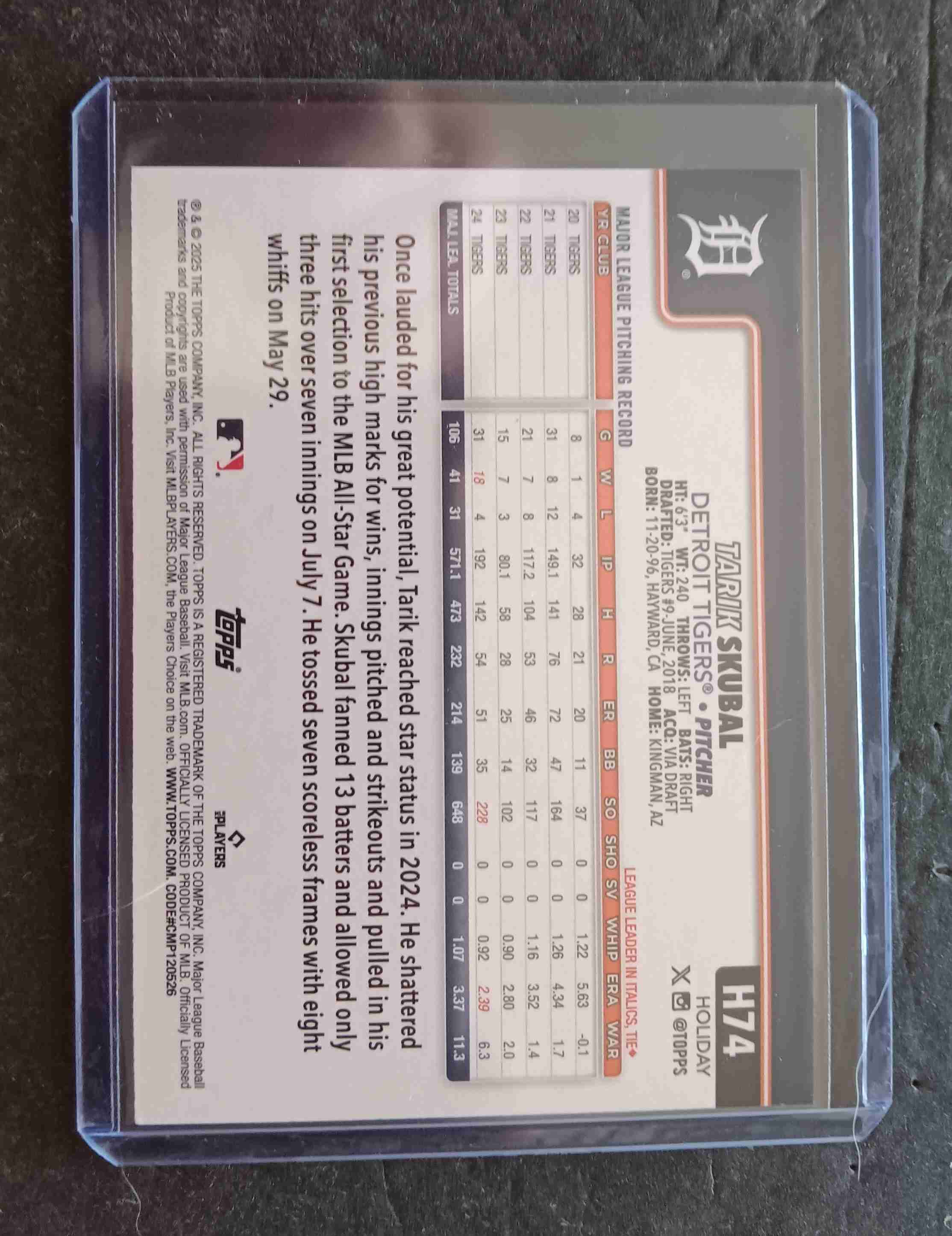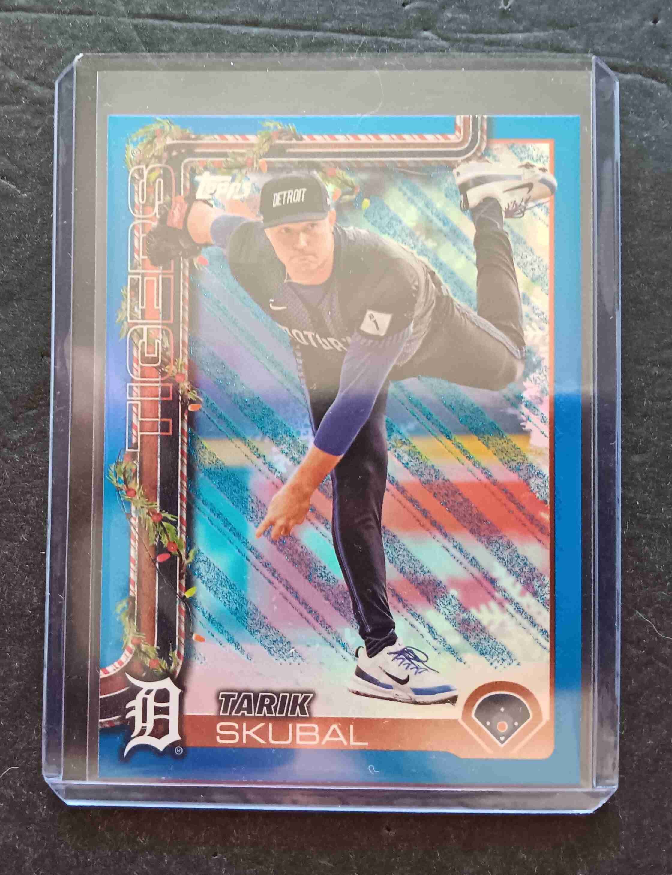 This auction is for a 2025 Topps Holiday Tarik Skubal Blue Metallic