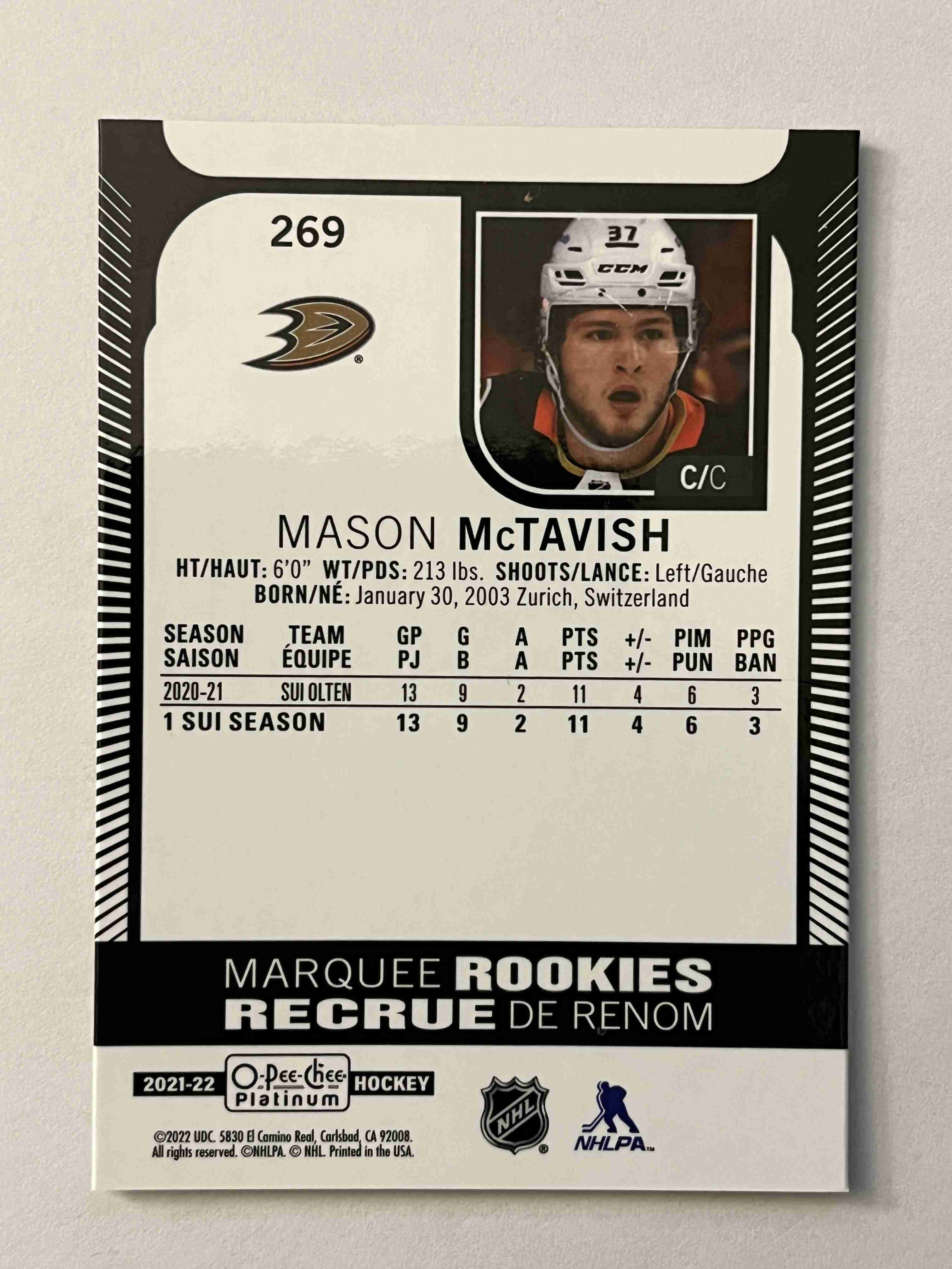 Mason McTavish 2021-22 OPC Platinum Marquee Rookies RC