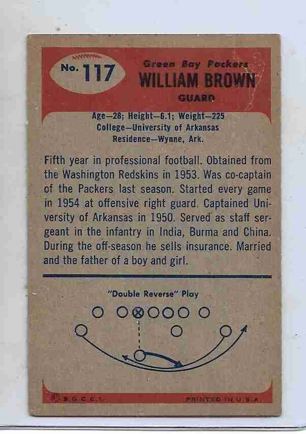 1955 Bowman #117 ~ William Brown Green Bay Packers